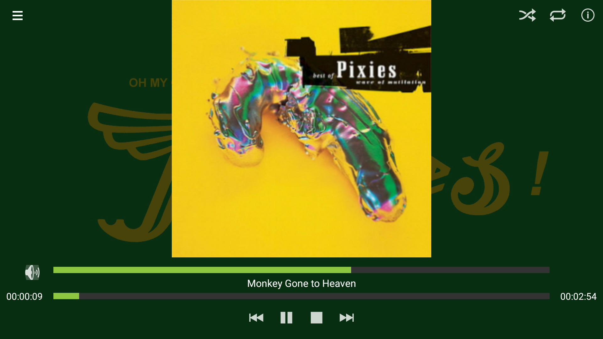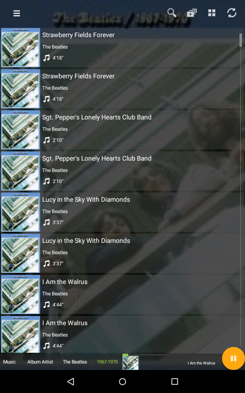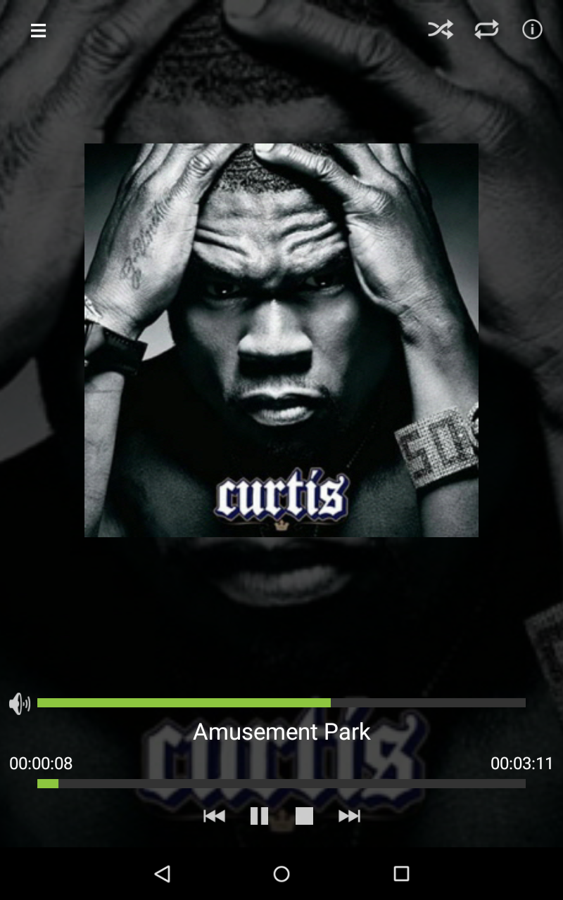 • Full details displayed for music, including title, album cover, album, artist, track number and genre.