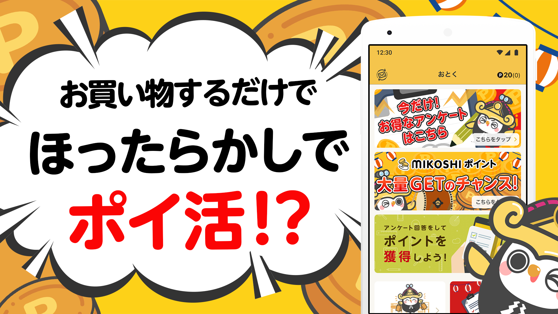 MIKOSHI (Package Name: co.swingmail.mikoshi) is developed by BHI, Inc. and the latest version of MIKOSHI メールでポイントが貯まるお小遣い稼ぎアプリ v1.34.0 was updated on February 26, 2026. MIKOSHI メールでポイントが貯まるお小遣い稼ぎアプリ is in the category of Lifestyle. You can check all apps from the developer of MIKOSHI メールでポイントが貯まるお小遣い稼ぎアプリ. Currently this app is for free. This app can be downloaded on Android 8.0+ on APKFab or Google Play. All APK/XAPK files on APKFab.com are original and 100% safe with fast download.