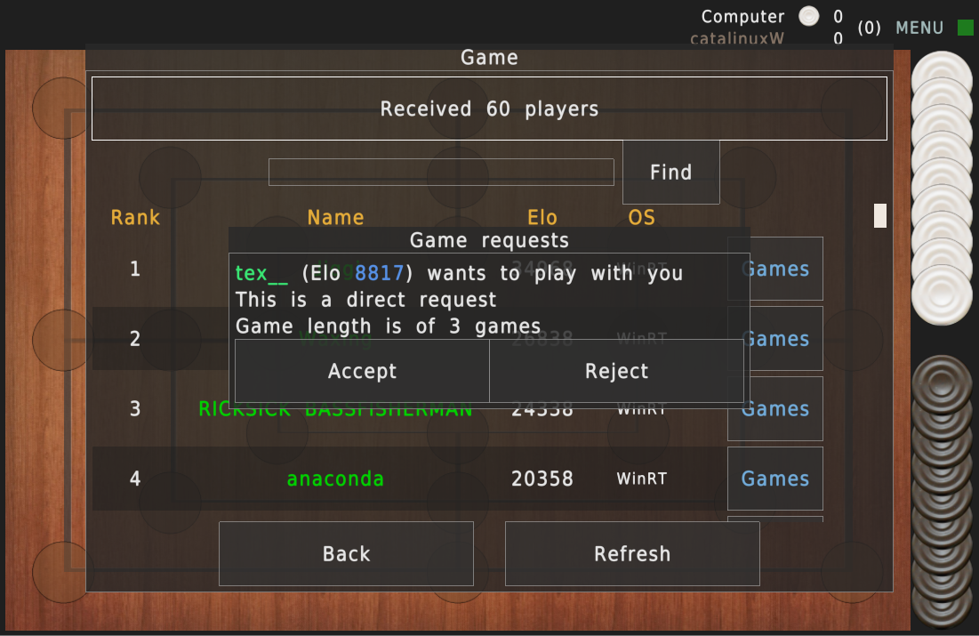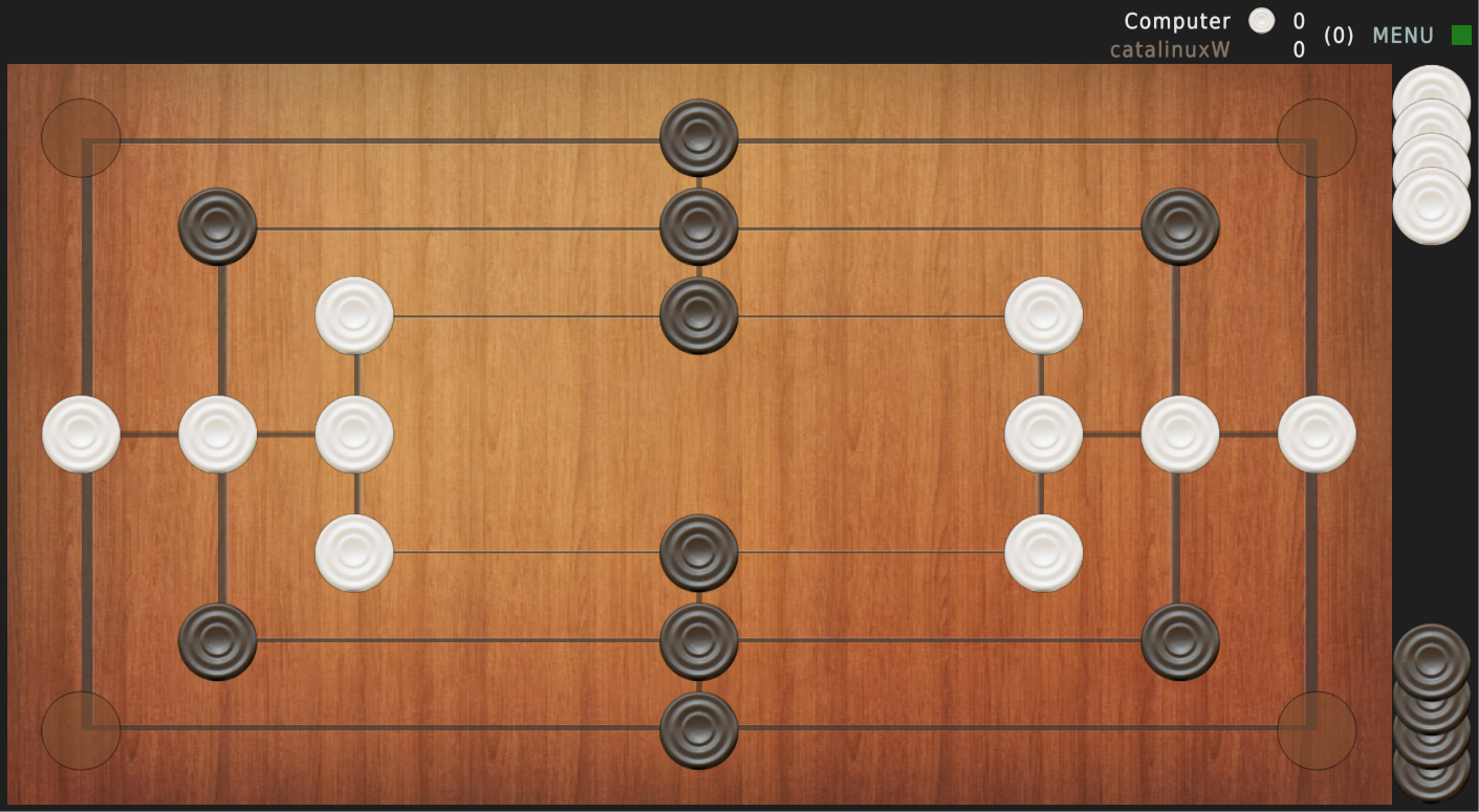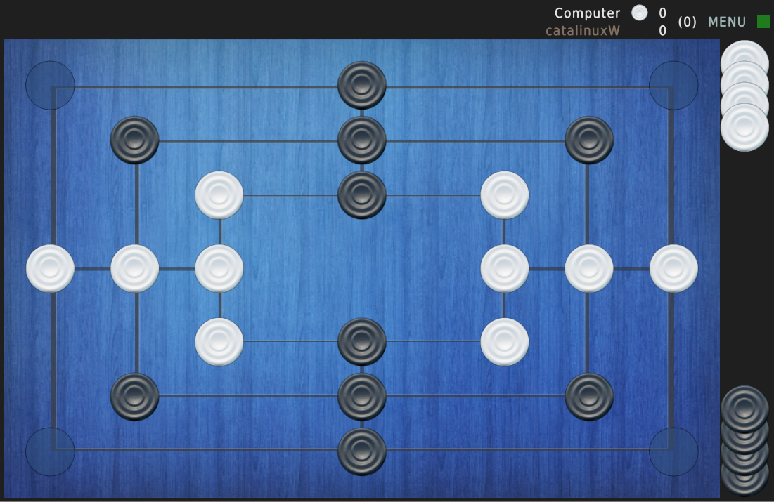 Welcome to the Mill Morris Online! It supports playing offline and online with other users. ***** Play with friends using desktop or phone running Windows 10! Game rules: Each player starts with 9 checkers. Each player must place all of their checkers on the board. Once all the checkers are on the board, players begin to move their checkers: - A checker can be moved from one dot to another along the lines. - A checker can only be moved 1 place at a time. - A checker cannot be moved onto a dot that is already occupied by another checker. Whenever a player forms a mill (three checkers in a row), that player can take one of their opponent's checker off the board (as long as it doesn't form part of a mill itself). - If all the opponent's checkers are inside a mill then an exception is made and the player can take any checker. The game is won when your opponent cannot move any of the checkers or if they have only 2 checkers. The checker color can be changed from black to white. The number of games can be assigned from 1 to 9 matches. The sounds can be muted. Players can watch running games in real-time. In order to watch a game, go to Play Online -> Lobby -> Games -> Watch option next to the game. In order to stop watching a game, click the Menu bar on top left of the application and select Leave option Players can talk to each other using the chat support. Unicode characters are not supported. Available on Windows 10 and Android! There is a Reset button in the Menu options for panic mode. What this does to disconnect from the server and reset the board. Enjoy ;) Also known as: Moara Online, Men's Morris, Nine Man Morris, Mills, SmerelliMerels, Merelles, Mérelles, Merrills, Mühle, Muehle, Mühlespiel, Molenspel, Jeu de Moulin, Tela, Merlo, Grissia, Grizia, Tavola Mulino, Mulinello.