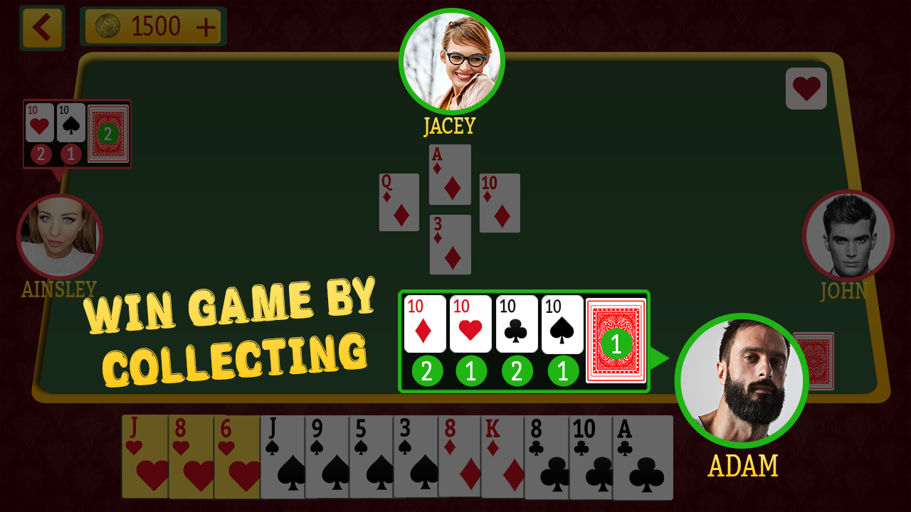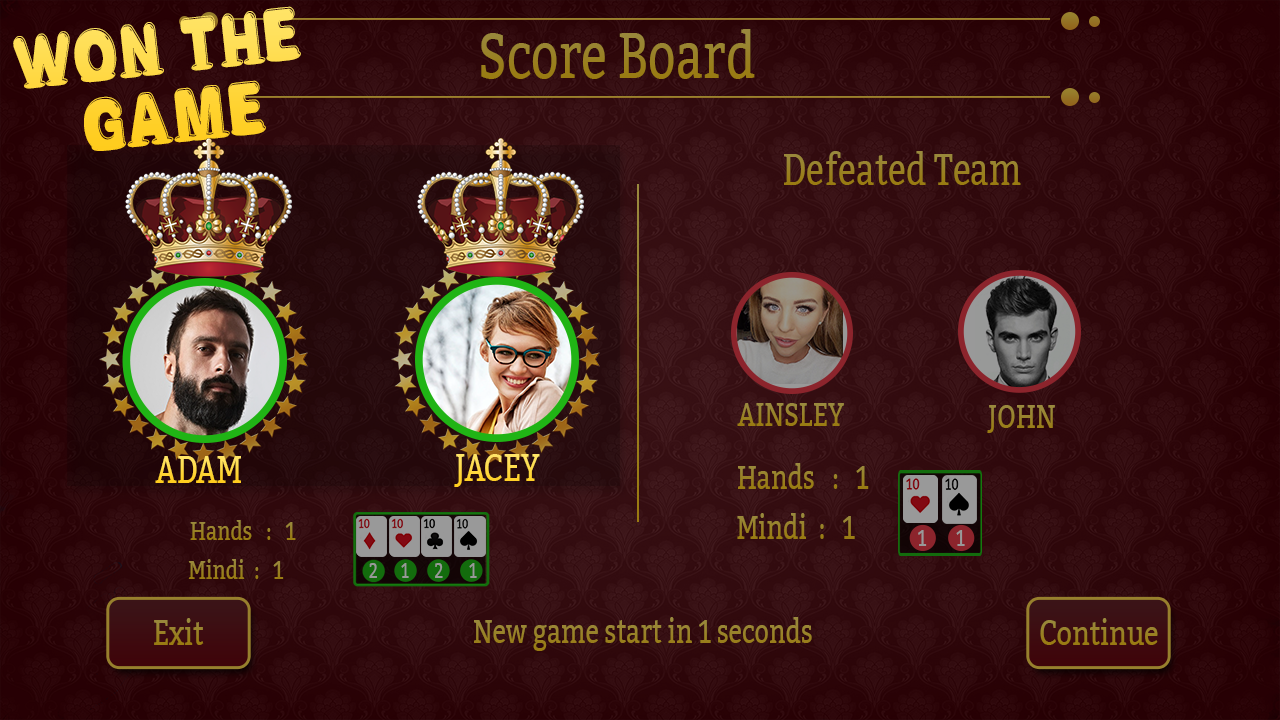 Initially all players gets 13 cards. It’s a team game so you and your partner have to collect more Mindies then your opponent team. There are total 4 Mindies in 1 deck game and 8 Mindies in 2 decks game.