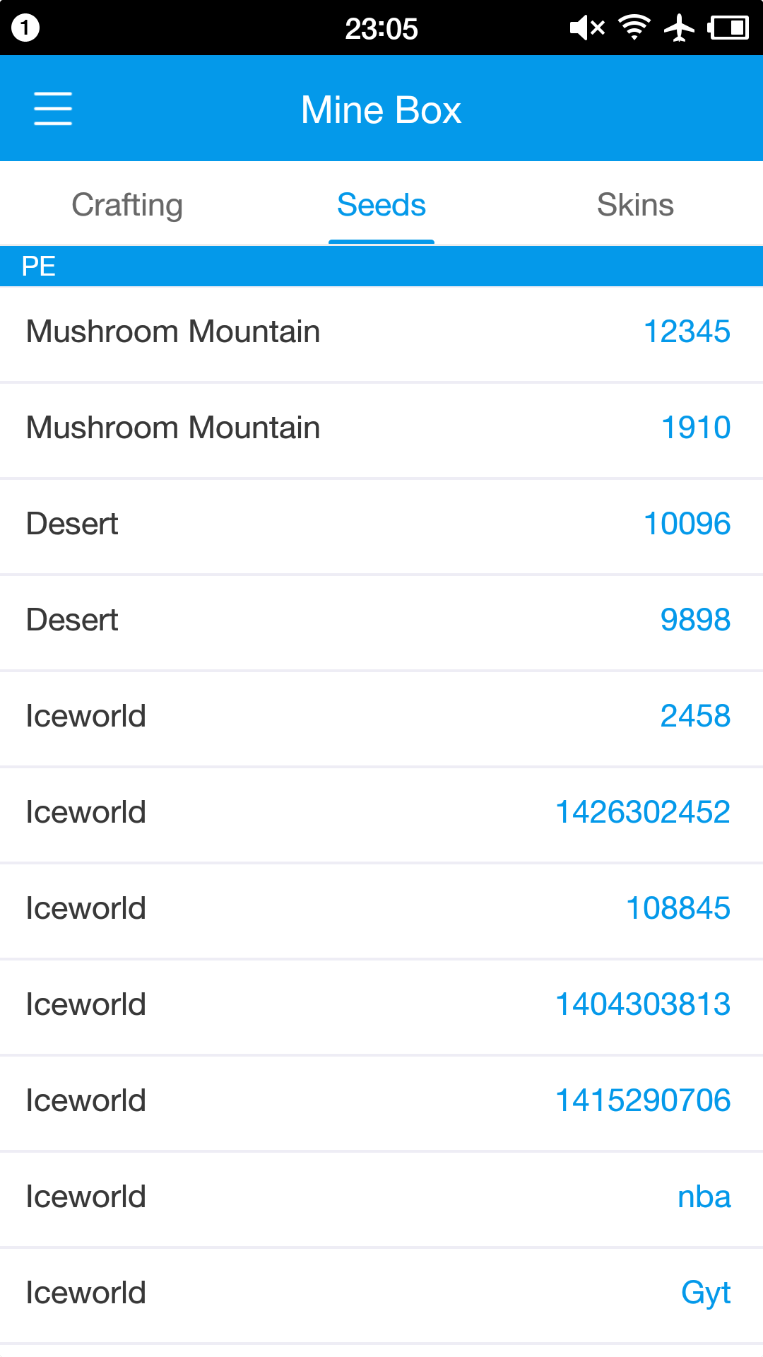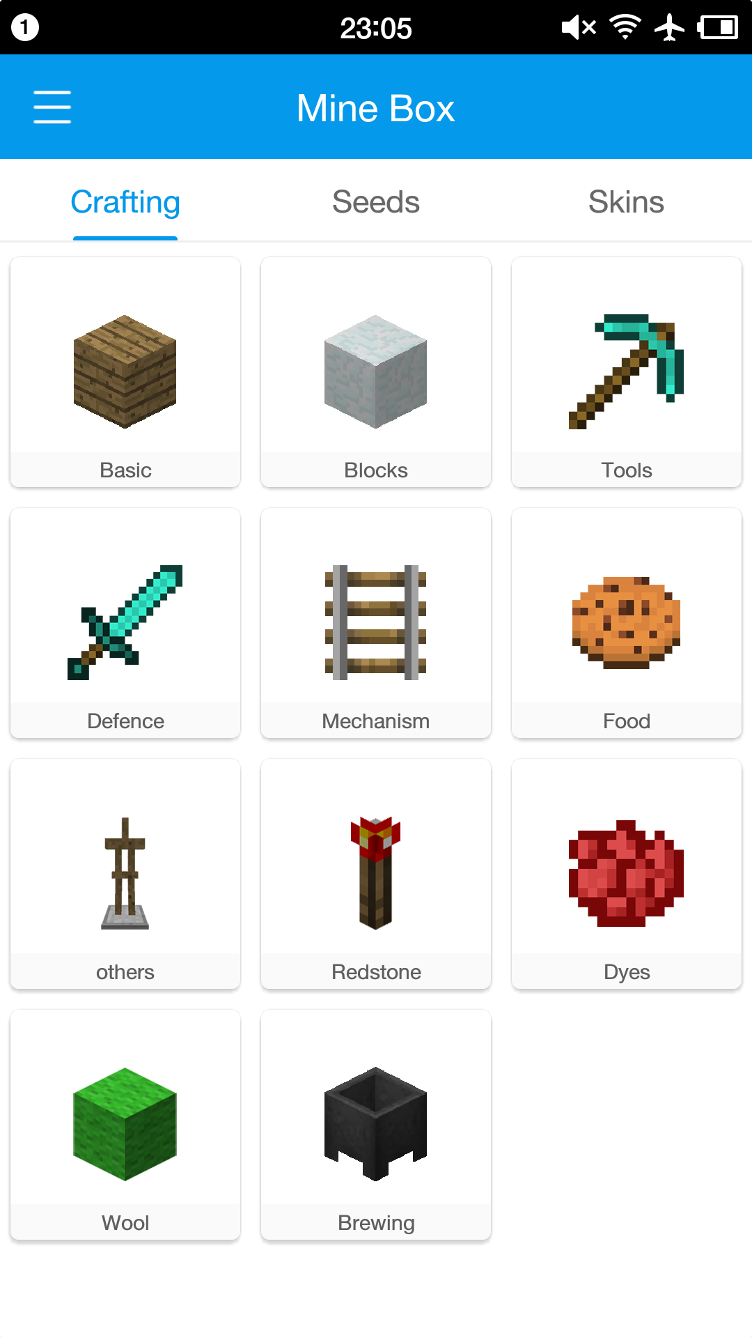 MineBox is a assistant application for Minecarft PE(PC) 1.Crafting Guide 2.Seeds for PE(PC) 3.SKins *Crafting guide showing crafting recipes for every possible item(by gif play). Includes basic items, blocks, tools, weapons,defence,mechanism, food, wool,dye, brewing,others.... *You can copy the code of seed or download the skin you like. --DISCLAMER-- The content used in Minecraft PE is all user submitted and completely safe. We never interact with Niantic servers. We are not associated, affiliated, sponsored, or endorsed by Mojang AB or the Microsoft Company. We do not hold the rights to any copyrighted material.