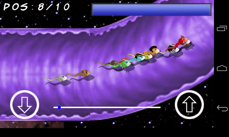 Comes the craziest racing game! Take your sperm to the egg before the others. Your birth depends on it. Choose from eight different players and 500 levels of difficulty. Special levels against the clock. Push your enemies to be first. Exclusive music and handmade graphics. Do not think twice, Participate in a thrilling battle for life. Made with AndEngine GLES2.