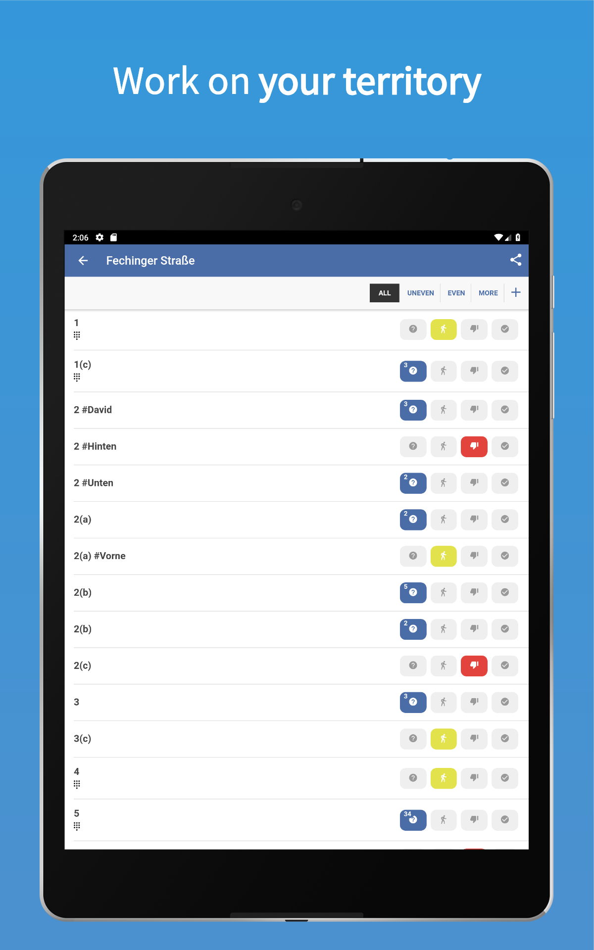 - Innovative tile system to edit territories and automatically add a visit if someone needs to be visited again