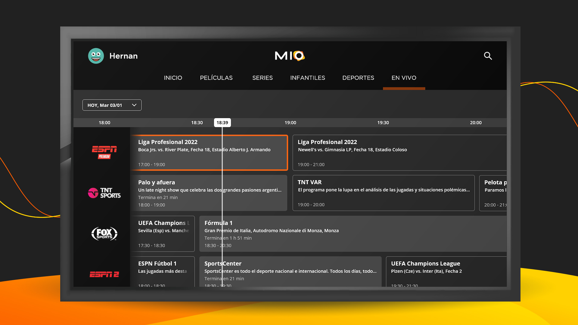 MIO is your online TV platform to enjoy anytime, anywhere, on any screen. Enjoy the full experience from your TV, phone, tablet, or PC, wherever you are. Find movies, series, sports, live programs, documentaries, children's programs... and much more, all in one place! • Live channels so you can enjoy without limits • All the content from TNT Sports Premium, ESPN Premium, Paramount+, Universal+, HBO Max, MotorPlay, Teatrix, and much more, on a single platform • More than 40,000 on-demand titles: movies, series, children's programs, documentaries, and more • All sports live and in high definition • Exclusive content for kids • Parental controls with PIN to manage access to content • Continue watching on any device from where you left off • Content search: save your favorites and resume whenever you want Get it now at http://www.mio.tv and start enjoying without limits!