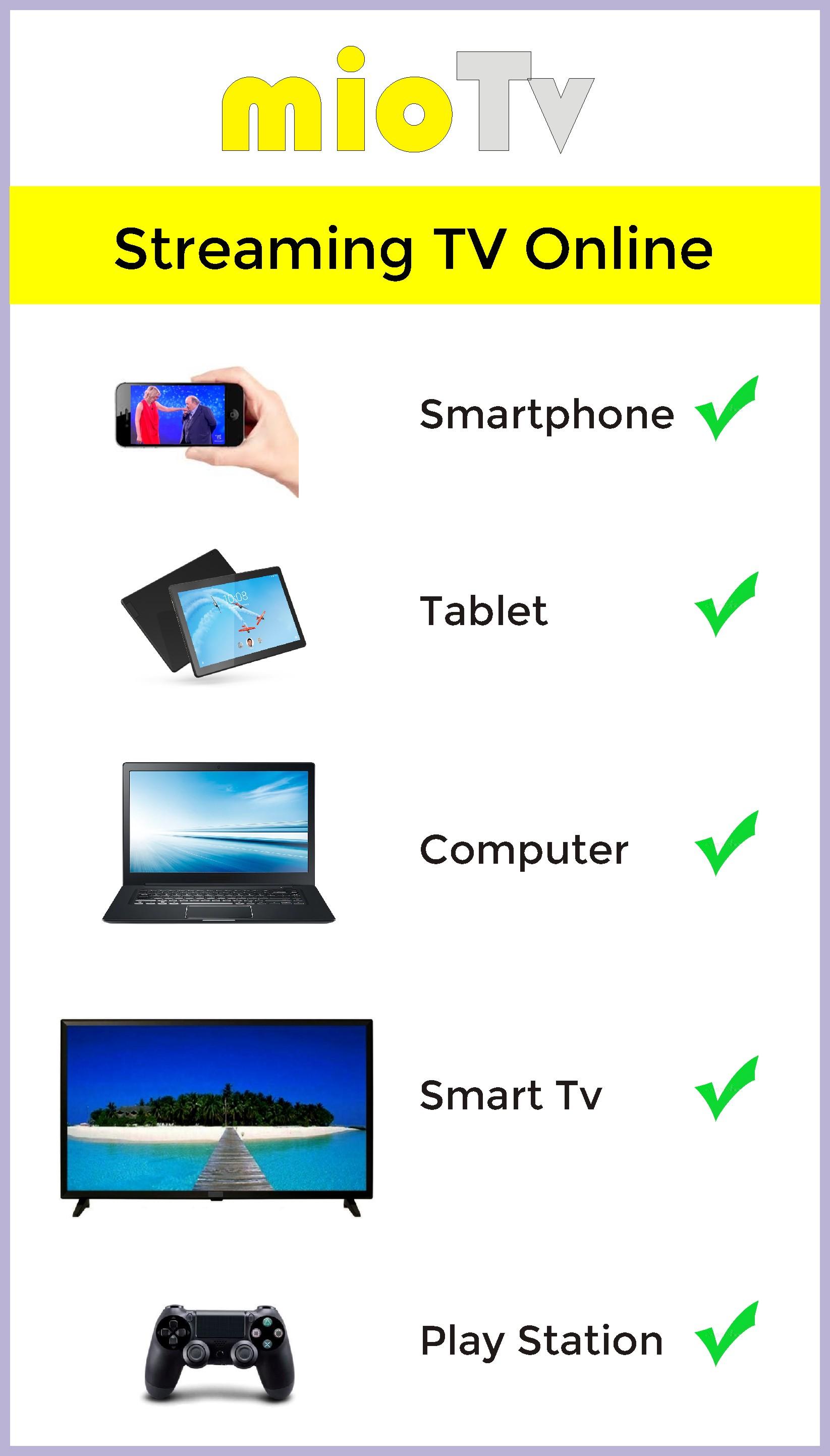 You can watch with: Smartphone, Computer, Tablet, Smart TV, Play Station.