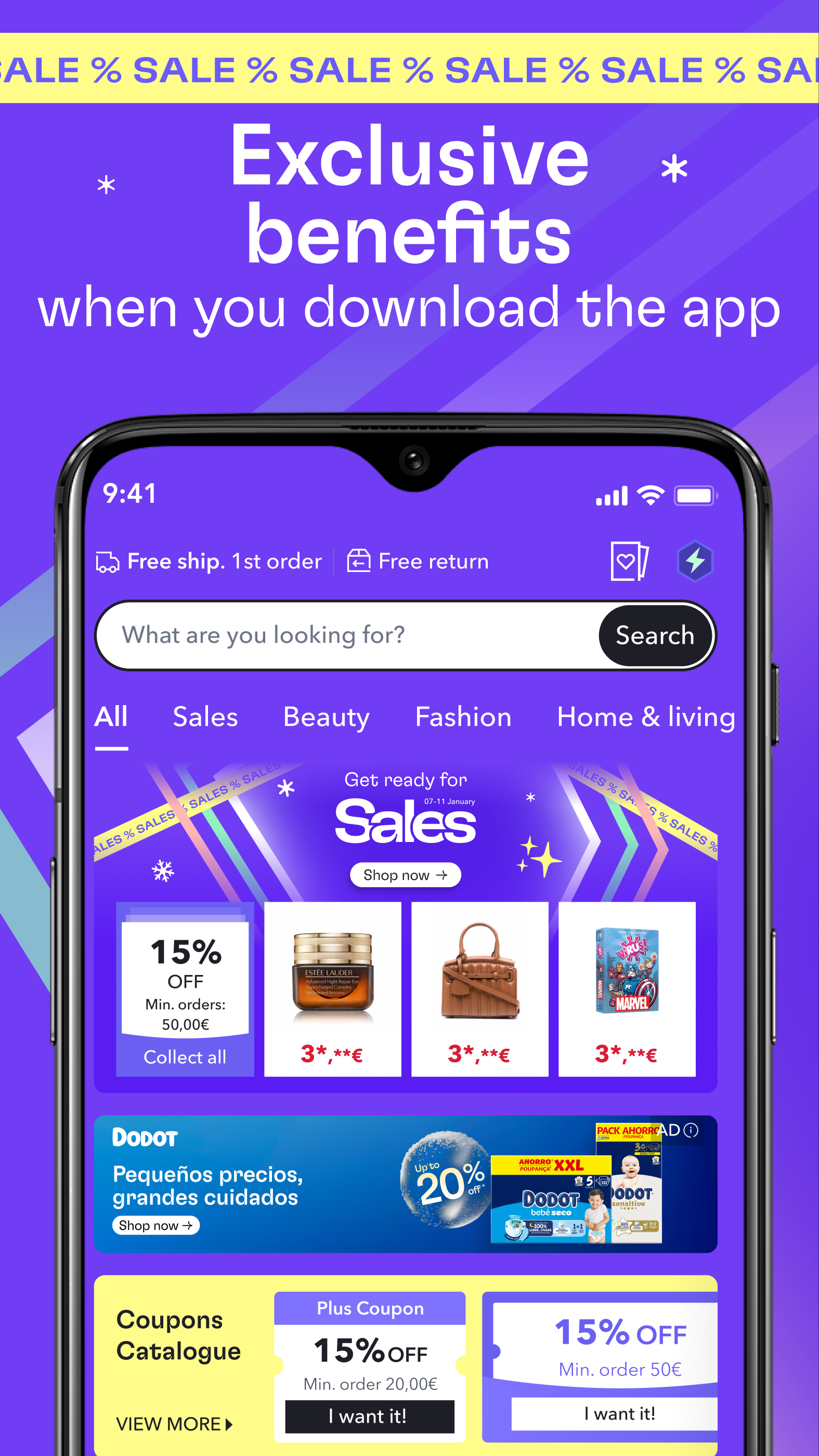 By downloading the app, you will have access to the best promotions and offers before anyone else! Enjoy your Welcome Coupon in your first order and get your favs with free shipping. Cool, right? Also, don't forget our promotions like Flash Sales or Buy more, save more!