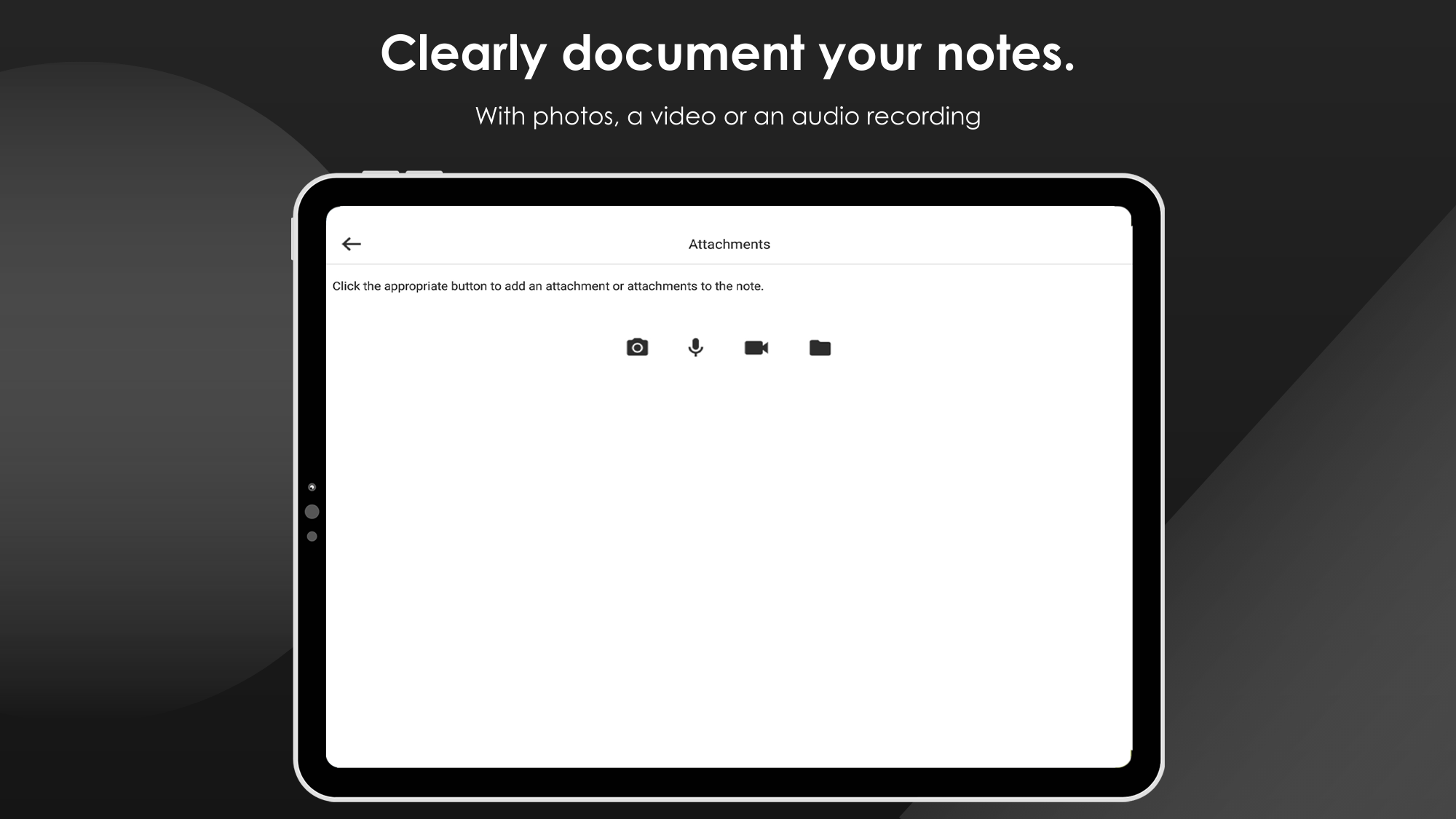 The user can attach photos, a video or even an audio recording to the note, allowing the exact description of the problem in a clear and comprehensive manner to eliminate any ambiguity or risk of error.
