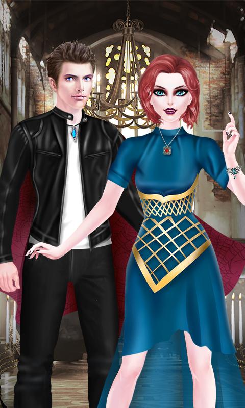 The local vampire Queen is holding a big ball for all of her subjects tonight! You received your invitation right as the sun went down, so you need to hurry and get ready. The Queen of the Night doesn’t like her guests to be late or a hot mess! Head straight to Midnight Salon to get the perfect look. Don’t forget to grab a hot date! In Vampire Salon, get ready to party with all the local monsters of the night. Relax in the spa to get your skin pampered and prepared for makeup. Design your look by selecting dark makeup that highlights the paleness of your skin. Fix your hair in beautiful curls or a gorgeous updo for an old-school look to match your age. Finally, dress in a beautiful gown that will impress your date. Once you’re ready, make sure your date is tall, dark, and handsome. A lady of the night can’t have a lame date! Product Features: - Cool vampire themed beauty salon game. - Choose a blood-thirsty monster: Serena, Cece, Monica, or Emmy. - Choose a date: Teddy, Richard, Robert, or Victor. - Spa tools to pamper your pale skin. - Beautiful dark makeups for the perfect midnight look. - Tons of gorgeous gowns to dress up in! - Makeover your date to match your look! - Find the hottest look for the vampire ball! How to Play: - Use interactive controls to play the game. - Pick a character to play. - Clean up, pick out makeup, and fix your hairstyle. - Dress in beautiful ball gowns. - Choose and dress up your date.