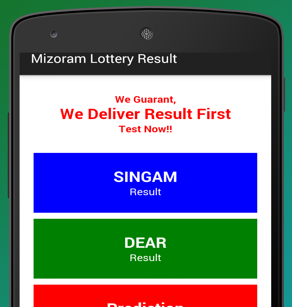 Mizoram Lottery Results is an android app from Leaf Media Solution for Mizoram Lottery Lovers who want daily results right from smartphone. We give live updates of lottery result directly from Mizoram State Lottery Department. We are the fastest lottery result publisher. We deliver result before any other app publishes result. It includes features such as: * Live lottery result publishing. * Direct from Govt. Mizoram Lottery Department. * Daily update app. * Simple & easy user interface. * Frequent modifications and stable versions. * No notification hassles. * Less data usage, work perfectly in 2G, 3G and 4G network. * Compact and small size installation. * Options to install on SD card or Phone Memory. * Low disk space & CPU requirement. Fast running! * It’s a 100% Free app and only available through Google Play. * Quickest and most convenient way to check. We includes lottery result of SINGAM DELIGHT, SINGAM GREAT, SIMGAM VIGOR, SINGUM ENERGY, SIMGUM DIGNITY, TOUGH, ZEAL, DAAR AFFECTIONATE, DER LOVING, DERE SINCERE, DERA FAITHFUL, DIRE KIND, DIAR TENDER, DEER GENTLE. We not only publish todays Mizoram lottery result but also yesterdays, all results of this month and previous year. Please rate our app on Google play and give your reviews. Disclaimer – It doesn't have direct connection with Mizoram State Lottery Department. Mizoram Lottery winners are requested to verify the result with government gasset. This result is published only for immediate knowledge of buyers and sellers regardless of accuracy...