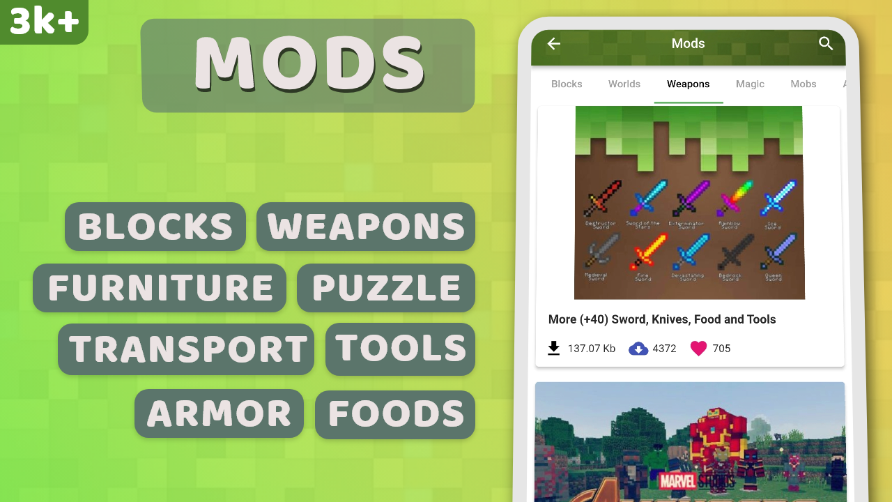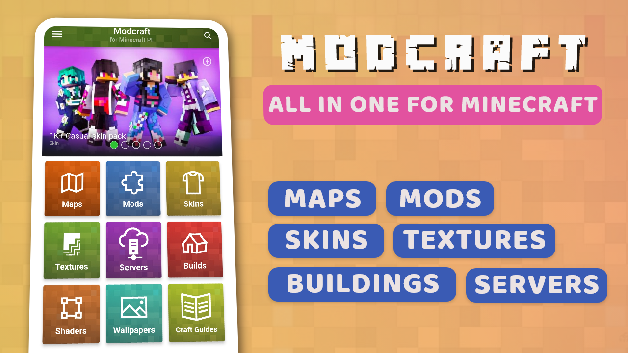 This application requires Minecraft Pocket Edition Manager Addon Installer - All in One for Minecraft 🔥 Explore and Add a simple and easy way any Mods, Maps and Skins for Minecraft Pocket Edition. ModCraft is a free and user-friendly application launcher and addon manager for Minecraft PE where you will find all the latest maps, mods, textures, seeds, servers, wallpapers, skins, add-ons, and crafting guides. - 🚀 No coins, free downloads ! - More than 5000+ Maps, Mods and Textures - Over 1000+ skins and Skin Packs - Automatic installation and imported in a few clicks - Daily updates - Minimal Ad Impressions - Fast server database 🏰 Installing buildings on your maps Import buildings to your Minecraft map in a few clicks! You can simply select the building you like and click continue - and it will appear on your Minecraft map! You can build a furnished house or even a Statue of Liberty on an existing Minecraft map! 🧩 Mods and Addons for MCPE - Top popular and best Mod for Minecraft and addons with automatic installation in the game and a launcher. - Mod Lucky Block - Mod Squad Game - Mod Horror Poppy Playtime - Mods on Weapons and Cannon - Mod for cars and transport - Mod for furniture and houses And much more (Animals, Portals, Redstone, Dagon, Technique, Zombies, Mutants, Dragons, Tanks) 🗺️ Maps and Seeds for MCPE - Free and Best Maps for MCPE with multiplayer for multiple players. - Maps for Survival and Adventure - Maps for Creative and Creating - Maps for Mini Games and Parkour - Maps for PVP and Hide and Seek And much more Houses, Cities, Redstone, Plants, Horrors, Escape from Prisons, Cops and Bandits. 👕 Skins for MCPE Create your own unique character! - The most popular and rare Skins for Minecraft. - Skins for Boys - Skins for Girls - Skins for PVP and over 1000+ skins 🪄 Textures for MC PE - A variety of texture packs and shaders for a more realistic game. Change default textures and lighting. - 16x16 - 32x32 - 64x64 - 128x128 Realistic shaders and textures, your game can change beyond recognition! We have collected for you the most popular and free Addons from around the Internet. Download and install your favorite Addons with our application is very simple and fast. Enjoy! 👍 _____________________________ DISCLAIMER: NOT AN OFFICIAL MINECRAFT PRODUCT. NOT APPROVED BY OR ASSOCIATED WITH MOJANG. All rights reserved. In accordance with http://account.mojang.com/documents/brand_guidelines All files provided for download in this application are provided under a free distribution license. We in no way claim copyright or intellectual property.