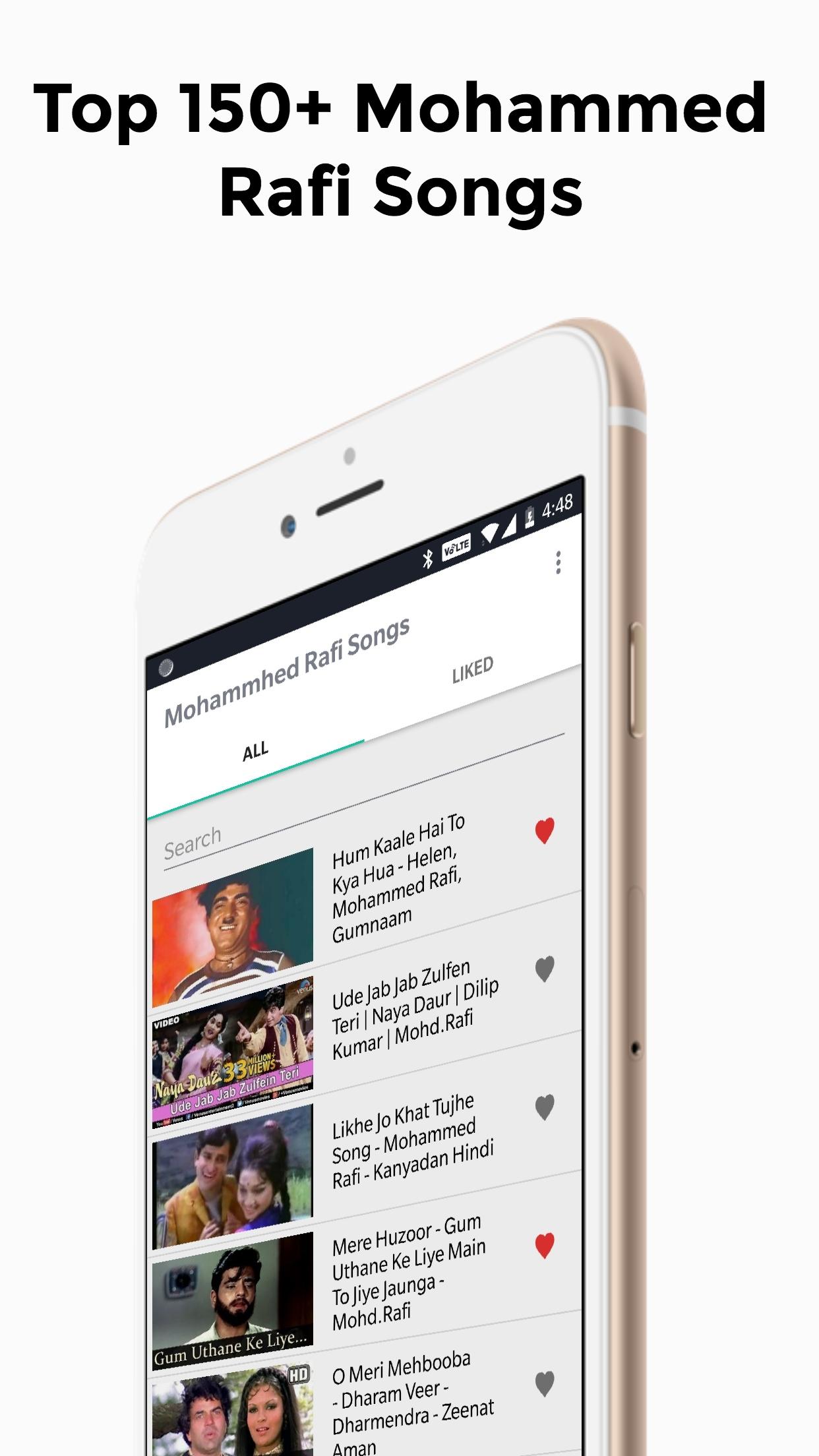A beautiful, nostalgic collection of 300+ video songs by renowned Bollywood singer Mohammed Rafi.