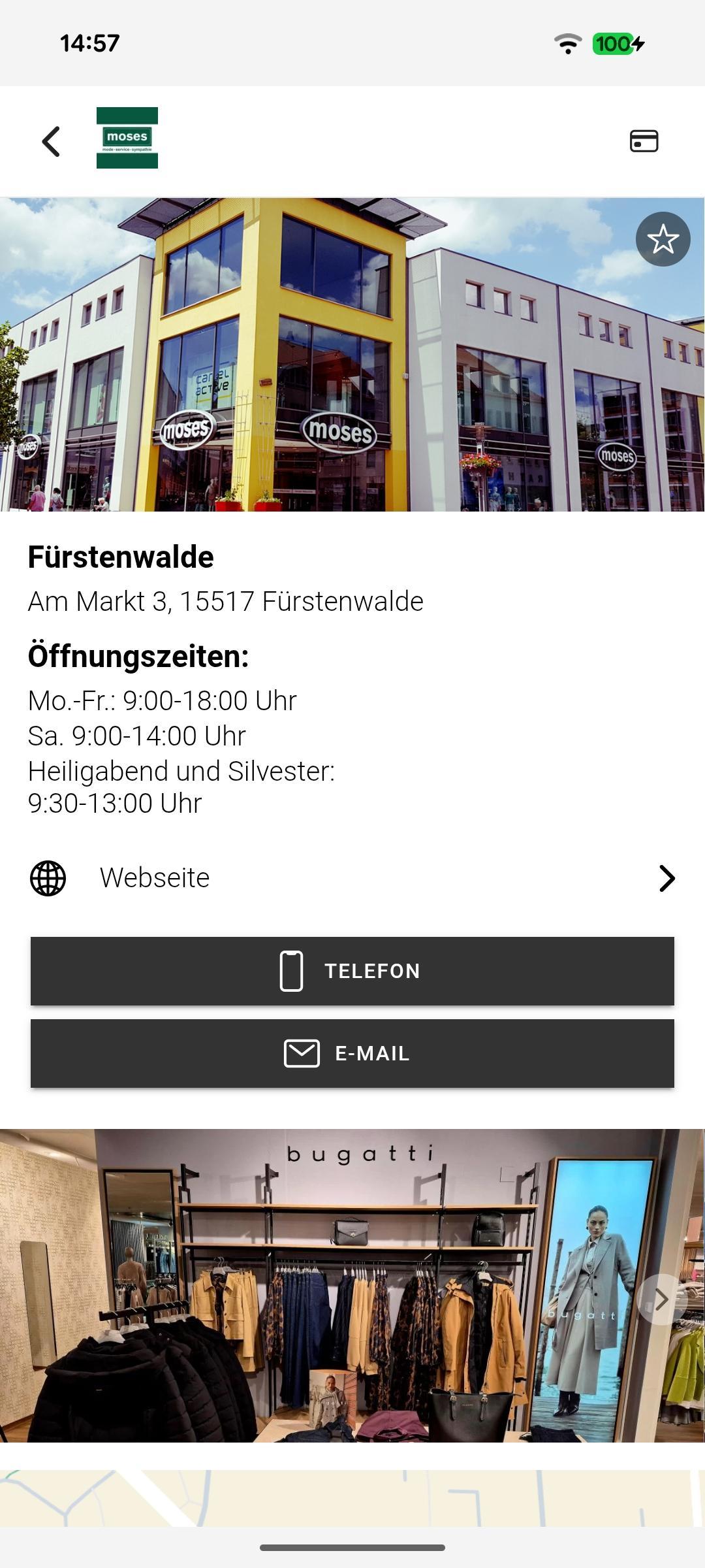 Get now the Moses app for the branches in Fürstenwalde, Strausberg, Gotha and Saalfeld! With the Moses app you have all the benefits of Moses on your smartphone always with you - and some added value in addition. Show my loyalty card: With this function you collect with us your turnover bonus for the next bonus check. Your card becomes redundant. Get your exclusive benefits directly pushed to your smartphone. This way, you can benefit directly and immediately from your advantage vouchers such as € coupons, giveaways and discounts and redeem them directly with the app. My invitations: You will also receive your invitations to our events and special offers directly on your smartphone. On request you can register here directly. News: With our news blog you stay up to date in terms of fashion, function and innovation.