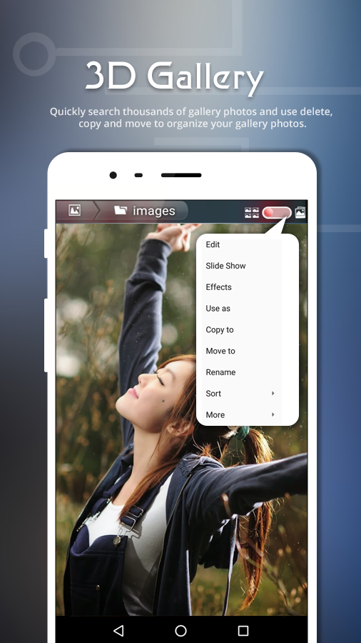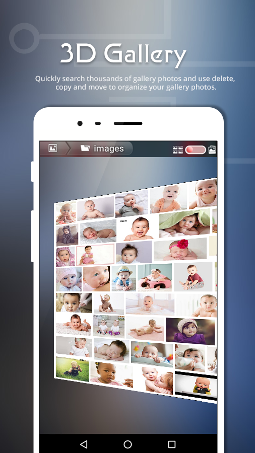The best photo gallery and photo managing app. Your photo's on a fantastic 3D gallery wall. The most effective, fast and stable Photo gallery and photo editor. This Gadget Gallary is very fast, light and modern gallary with special Animated Gallary looks for your smart android phone. The Smart Gallary app supports all the popular image formates like JPEG, GIF, PNG, PCX, TIEF, WMF, ICO, TGA, BMP. HD photo Gallery is not only a picture browsing tools, but also has the intelligent photo editer functions. gallery security is most important for any mobile, The Gallery App which can protect your gallery media collection with high security pin/password pravacy protection free. Track your gallery with password security for unknown person using your mobile. You can quick and easy to access all your media(photo and video) files by secret photo protecter app and also 3D Gallary app includes so many gorgeous 3D effect. It has utilized all advantage of your phone or tablet. You can easily hide your personal data through Secret album lock and Data vault manager. Digital Gallery is a free photo gallery with smooth gallery user interface and best innovative display. Private Photo Vault allows you to lock pictures in normal photo albums as well as password protected photo albums. Creating your own personal photo safe. popular gallery for android. Smart image Gallery can also show every detail of an image and provide multi-mode for you to display photos . android gallery apk, Safe Gallery is the best way to add a special effects to your photos , make them special and more original. HD image gallary is Free, Safe, Simple, Manage your photos and videos efficiently and easily. easy gallery app for android, video gallery app. Free Customizable Gallery is the best way to add a special effects to your photos , make them special colourful wallpapers collection Gallary. gallery for android, In only a few seconds an amazing photo collage is ready, absolutely free with Photovoltaic Gallary. apk for gallery app,free gallery application,android gallery app Key Features ** Photos ** - Create Albums and choose best photos of yours into secret folder. - Selfie Camera photo albums. - Able Grid Photo view. - Edit gallery pics. - Beauti Camera Effects on favorite gallery images. - Create effects like photo filter effects based on device. - Photo Slideshow, best animation for photo slide show in gallery. - Move files,delete, copy & paste. - Multiple file selections available. - Zoom in zoom out option. - Photo sorting unlimited. - Sort by, Name, date, Ascending, size, type, Descending etc. - Use as option to set wallpaper on your photo, contact profile pics. - Share photos to social networks. - rename files. ** Security Lock ** - Hide photo, Albums, videos - Hidden folder can view by security lock. - Create Privacy lock for hidden data. - Personal video & lock for private hd video. - Hide Secret photo. - password lock for gallery collections. - Password on show hidden file - Special feature which can not show folder to unknown person. ** gallery with video player ** - In-build video player for gallery. - HD video player with any video. - Share video to social network from gallery.