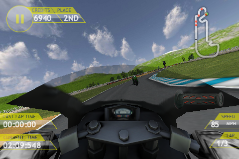 Ride your motorbike with this amazing sport bike simulator! Feel the realism of the amazing physics emulation on the 12 bikes and 5 tracks based on real circuits. Do wheelies to earn extra-credits to unlock bikes and tracks! The 3 camera views from behind,cockpit and fullscreen will add another 3D effect that completes the feeling of being really there. Every bike comes with different power,grip and brake settings. Enter the game right from the beginning with the stunning 3d menu replicating the real scene of a race backstage!