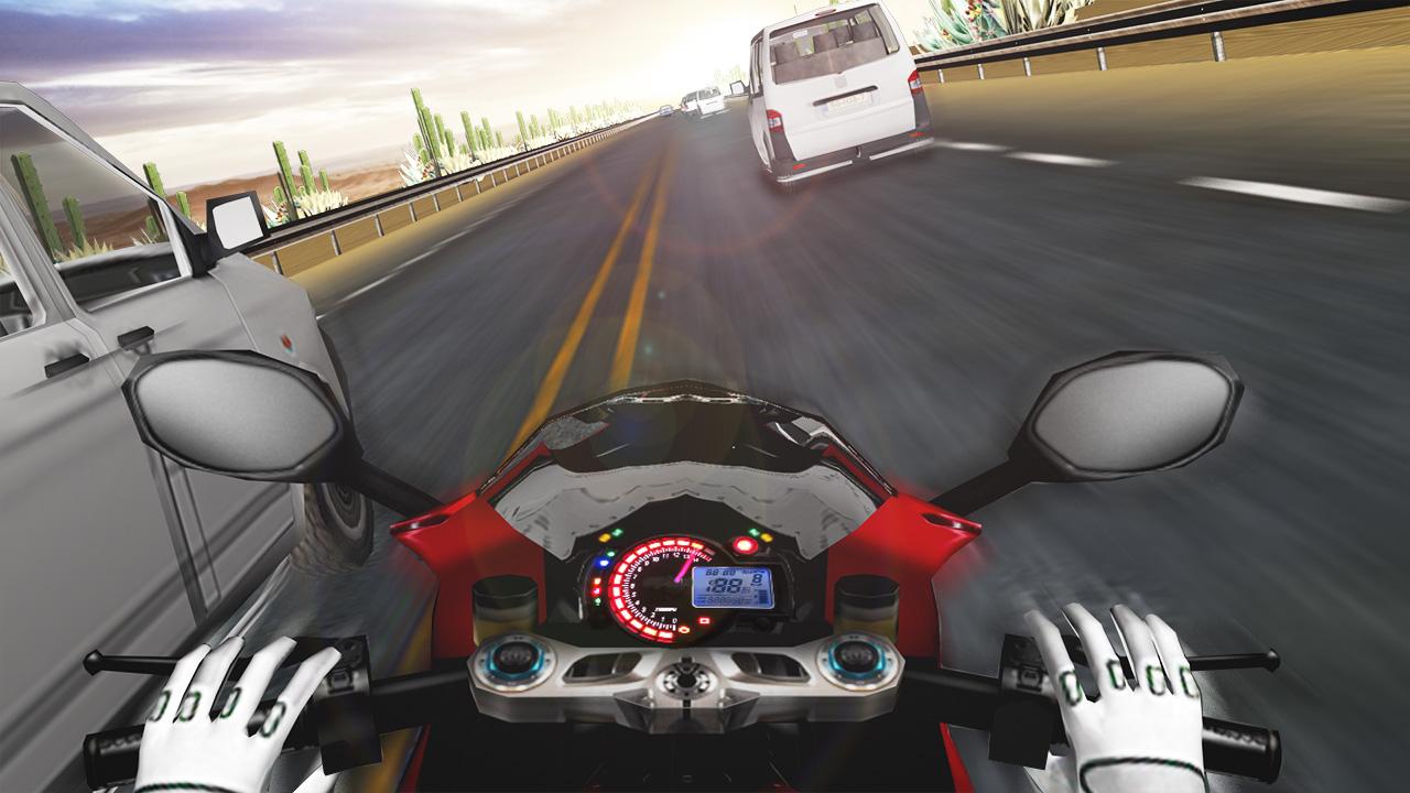 CAUTION : THE MOST EPIC, MOTORCYCLE RACING IS UP AHEAD! Motorcycle Moto Rider : Traffic is an insane motorcycle riding experience that lets you improve your lane splitting and traffic dodging skills from the comfort of your mobile phone! AUTHENTIC HIGH-PERFORMANCE MOTORBIKES No matter what motorcycle you ride in real life, It's time pick a motorcycle that defines you! – will it be the extremely fast superbike, epic chopper motorcycles or the modified high-performance versions of off-road motorcycles? The bikes vary in providing you the total lives, near miss bonus, wrong way bonus or high-speed bonus. GARAGE: TUNING & CUSTOMIZATION The garage lets you select any one of these high-performance motorbikes. Go ahead and tune your vehicle and customize its appearance. Select body color and decals. Your rides showcase your style and personality. Tune your motorbike's speed, braking and grip – Your bike's performance matters! GAMEPLAY THAT NEVER ENDS! Go out and race the twists and turns during peak traffic as fast as you dare and emerge, the best new moto rider in the world! Race traffic on your chopper, scooter, cross or superbike in order to complete all the challenges and blow away the competition! Grab your racing bike to ride in the endless busy roads and highways! Complete near traffic misses whilst you discover 4 unique locations: Suburbs, Desert, Snow and Night City in 4 unique modes! Jump your race bike/motorcycle on the highway, interstate, or autobahn. Remember riding your motorcycle is fun, but speed thrills, but kills! These roads & highways are full of speeding cars – you better have good braking skills! JUMP THE LEADERBOARDS! Hardcore challenges make you the fastest moto rider on the streets and these show up on the leaderboards rankings. Race the traffic, complete the challenges, get real towards the competition. LIFE-LIKE BIKES! The vehicle feature fully animated dash and speedometer, ready for some high-octane racing! A first in the traffic racing genre. Download MOTORCYCLE MOTO RIDER -TRAFFIC! Game Features: - Select the fastest high-performance motorcycles. - Prove your skills in hardcore challenges! - Enjoy near traffic misses discovering 4 unique locations: Suburbs, Desert, Snow and City Night - Delve into 4 unique locations in 4 different modes! - Ride & Race your motorcycle on the highway, autobahn or the interstate! - Upgrade speed, breaking and add extra lives! - Choose from your favorite motorbike category - we got chopper, cross or superbike. - Rule the online leaderboards! - Unlock all achievements! - Huge bike tuning options! Discover our other games: https://play.google.com/store/search?q=puffy%20thumb&c=apps&hl=en Like us on Facebook: https://facebook.com/puffythumb