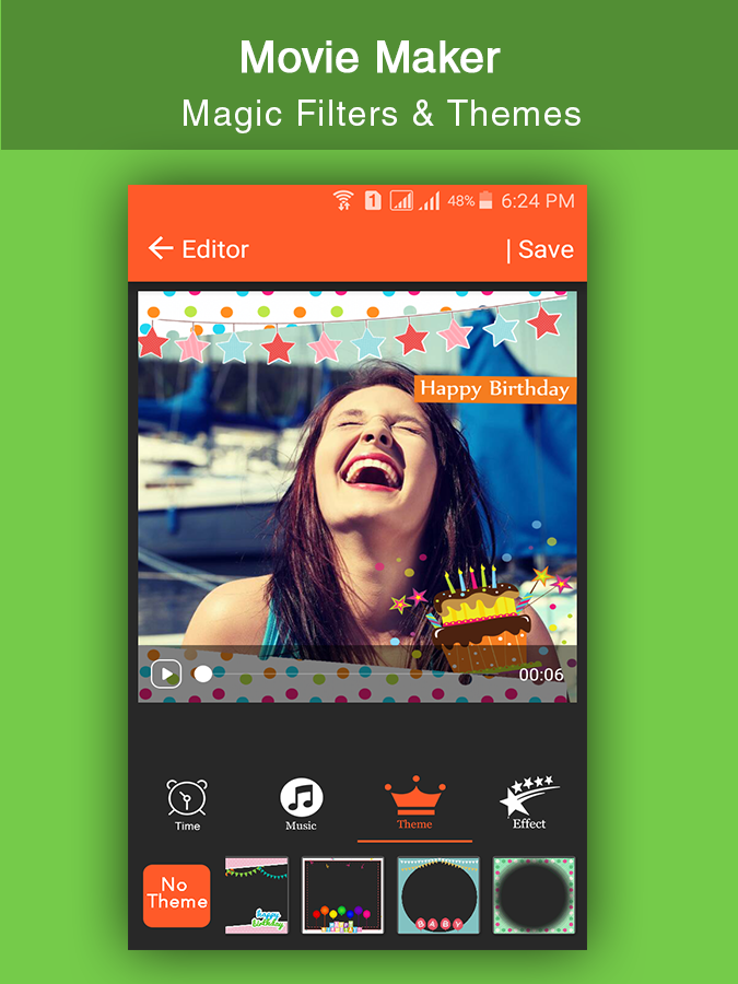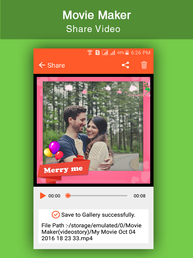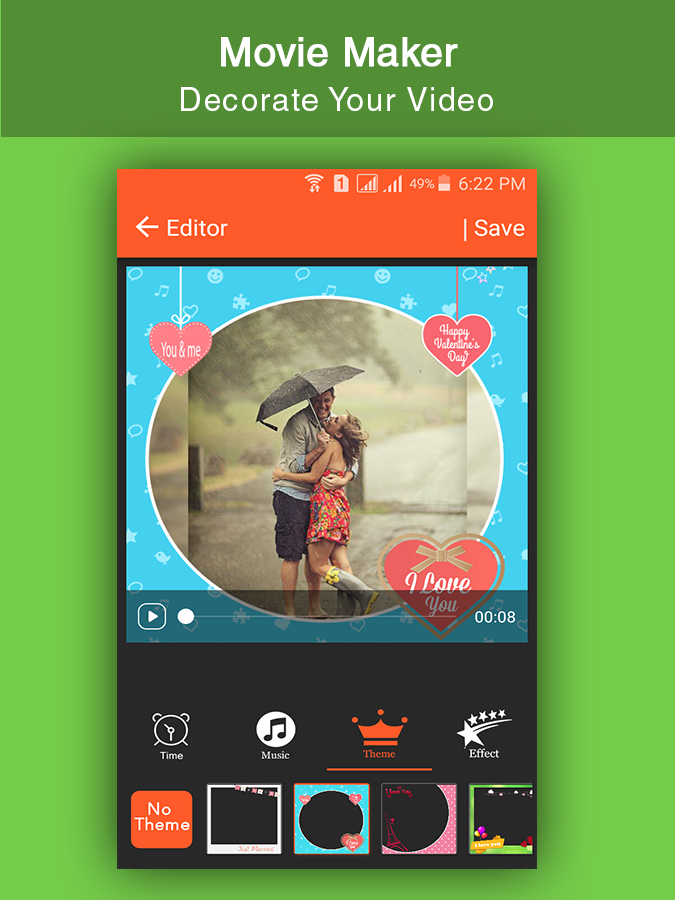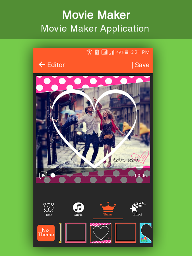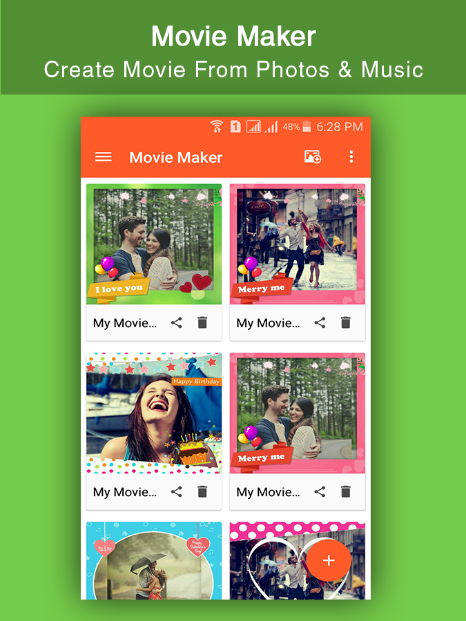 Movie Maker or Music Video Maker is amazing app to create video from photos and music. Music Video Maker app to Create photo slideshow from any number of photos with any length of movies. Music Video Maker or Movie maker create photo slideshow with music to save video in your mobile, you can share video to your friends and family. It is amazing thing for your friend and family to create movie for them at special times like -wedding -birthday -anniversary etc.. and share with them to make them special. Movie Maker or Music Video Maker have reach set of themes to apply on photos to create video from images and music. Movie Maker or Music Video Maker Feature Application : # Select whatever photos(pictures) like wedding,birthday,party,picnic celebration photo and music to make video story. # Many different Themes & Add Online Music . # Add your favourite music or audio to Movie Maker from your music library. # Powerful picture editor for add filters, backgrounds, and much more before creating Movie Maker. How to Create Amazing Movie Maker or Music Video Maker : 1. Select photo from gallery. 2. You can arrange your selected photo according to your choice with this app . 3. You can also having editor facility for your photos & Videos . 4. Preview your videos or movie . 5. Add Music from your music library to set your song in video for this app. 6. Set Time(2s ,4s, 6s ,8s ,....etc) in Frame between photos in video. 7. You can share video via social link. 8. Easy process to create amazing video from photos. Have a great fun and enjoyment for Movie Maker !!