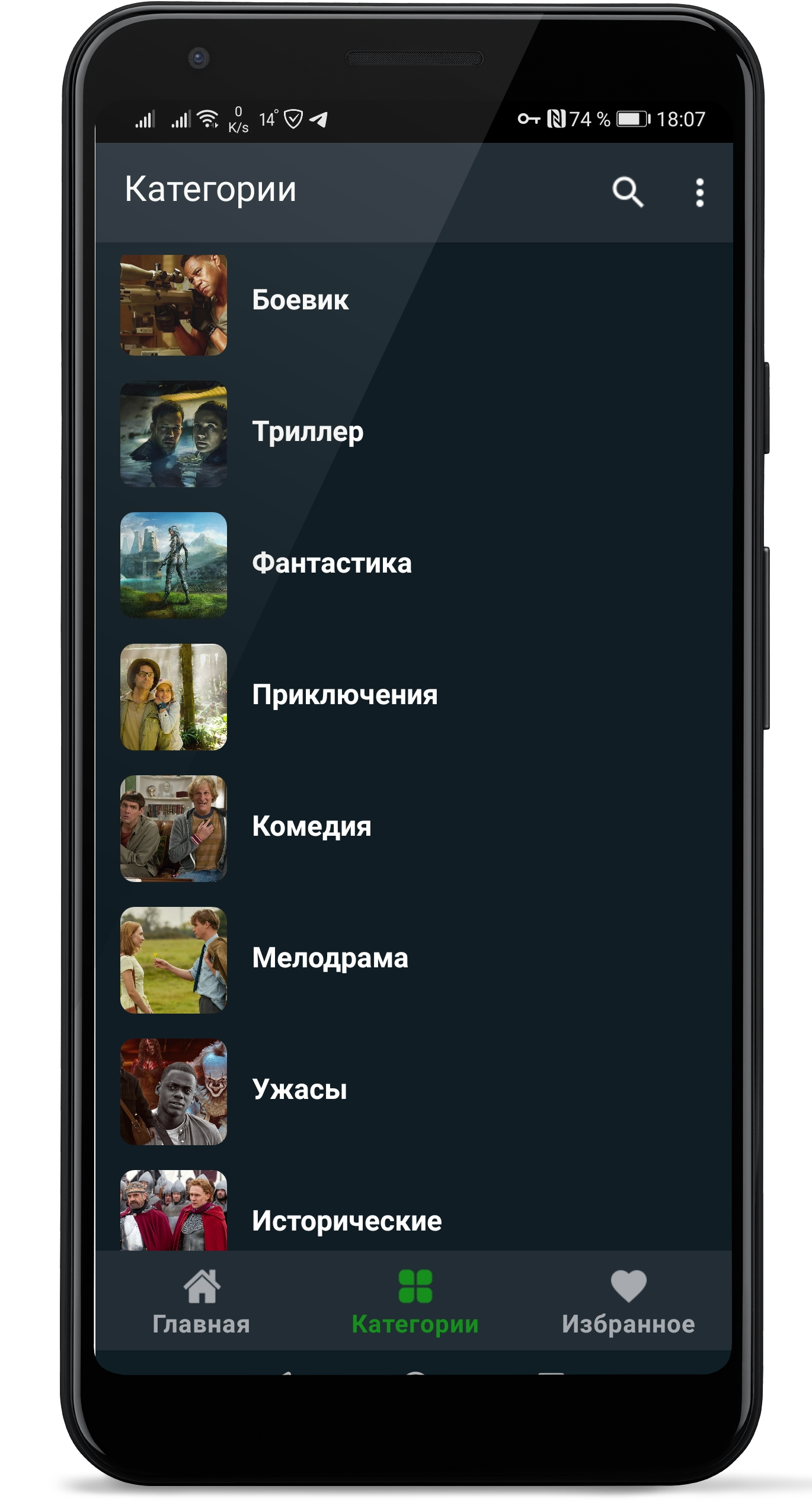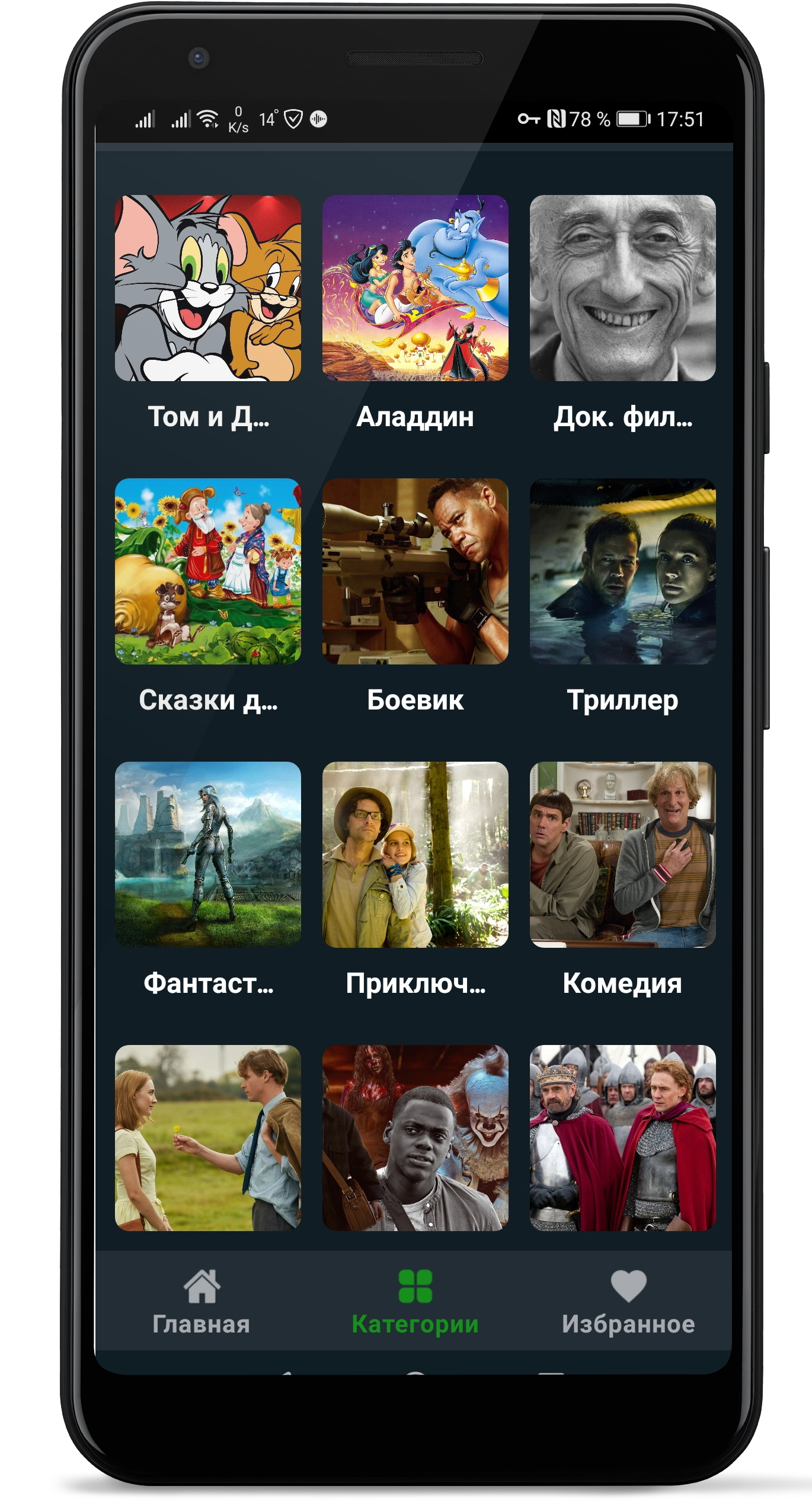 This is a handy application for watching movies from the database (movie poster). There is a favorites function where you can add your favorite movies, series for further viewing.