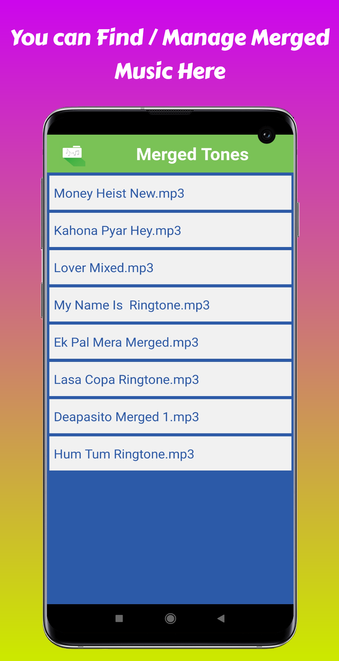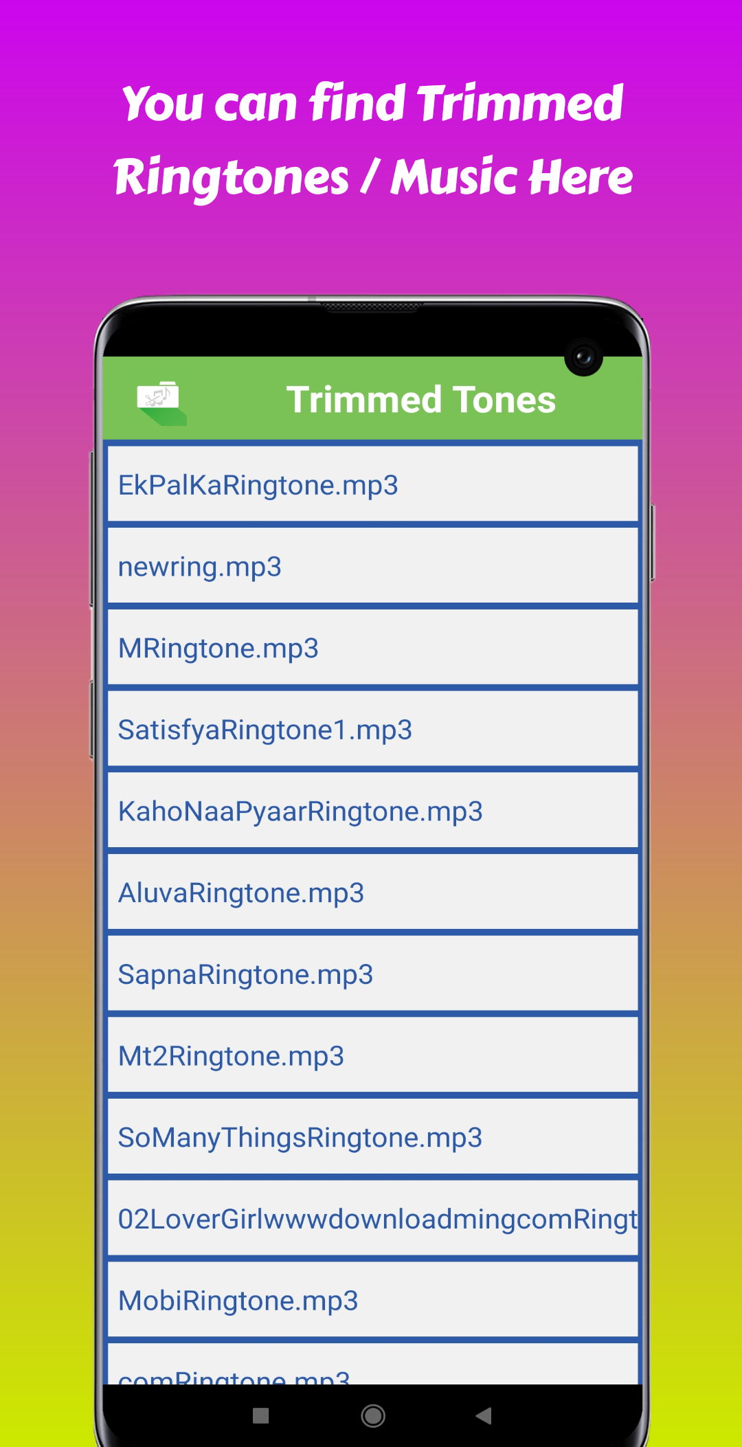 ✓You can access both the trimmed and merged mp3 from the home page folders (Trimmed tones & Merged tones) in the application itself.