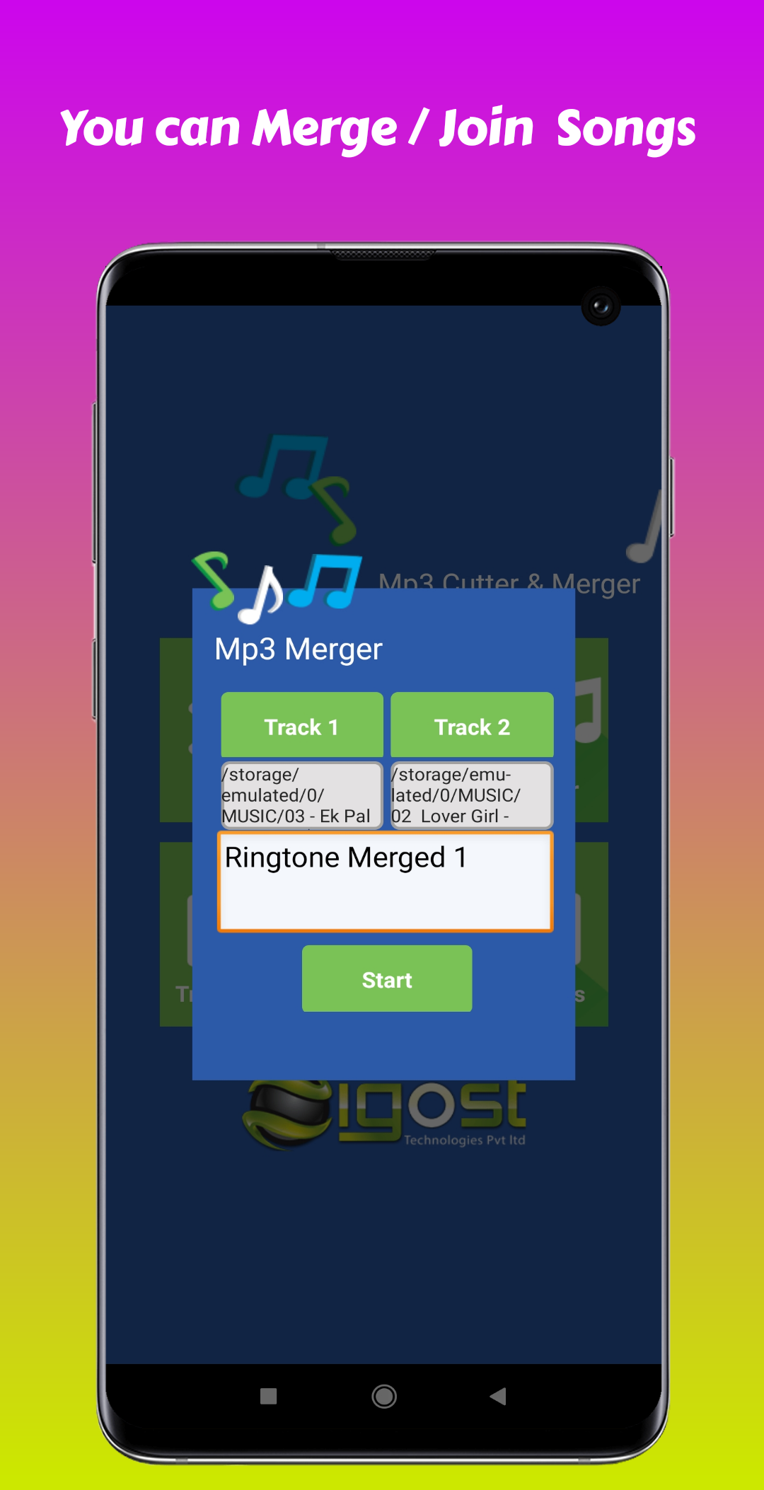 ✓storage path of both trimmed and merged mp3 is mentioned separately (sdcard/igost/music).