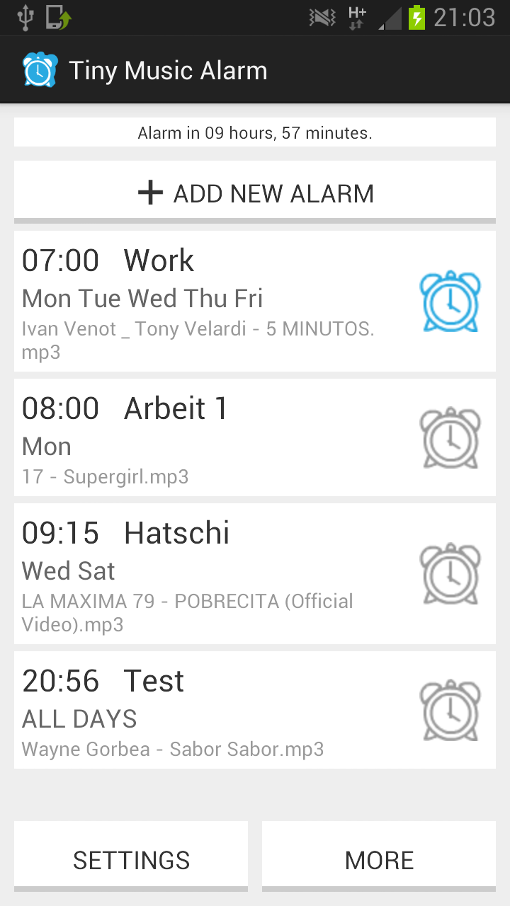 MP3 Music Alarm (Package Name: de.wirecode.musicalarm) is developed by Michael Zetzmann and the latest version of MP3 Music Alarm 2.2.0 was updated on June 2, 2014. MP3 Music Alarm is in the category of Tools. You can check all apps from the developer of MP3 Music Alarm. Currently this app is for free. This app can be downloaded on Android 3.0+ on APKFab or Google Play. All APK/XAPK files on APKFab.com are original and 100% safe with fast download.