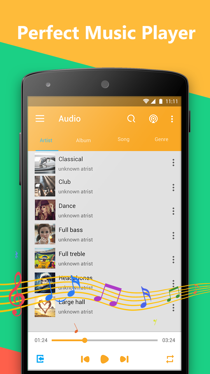 MP4 video player is also a music player. You can browse and play your music by albums, artists, genres and playlists. MP4 video player can play MP3, wav, AAC and so many other audio formats.