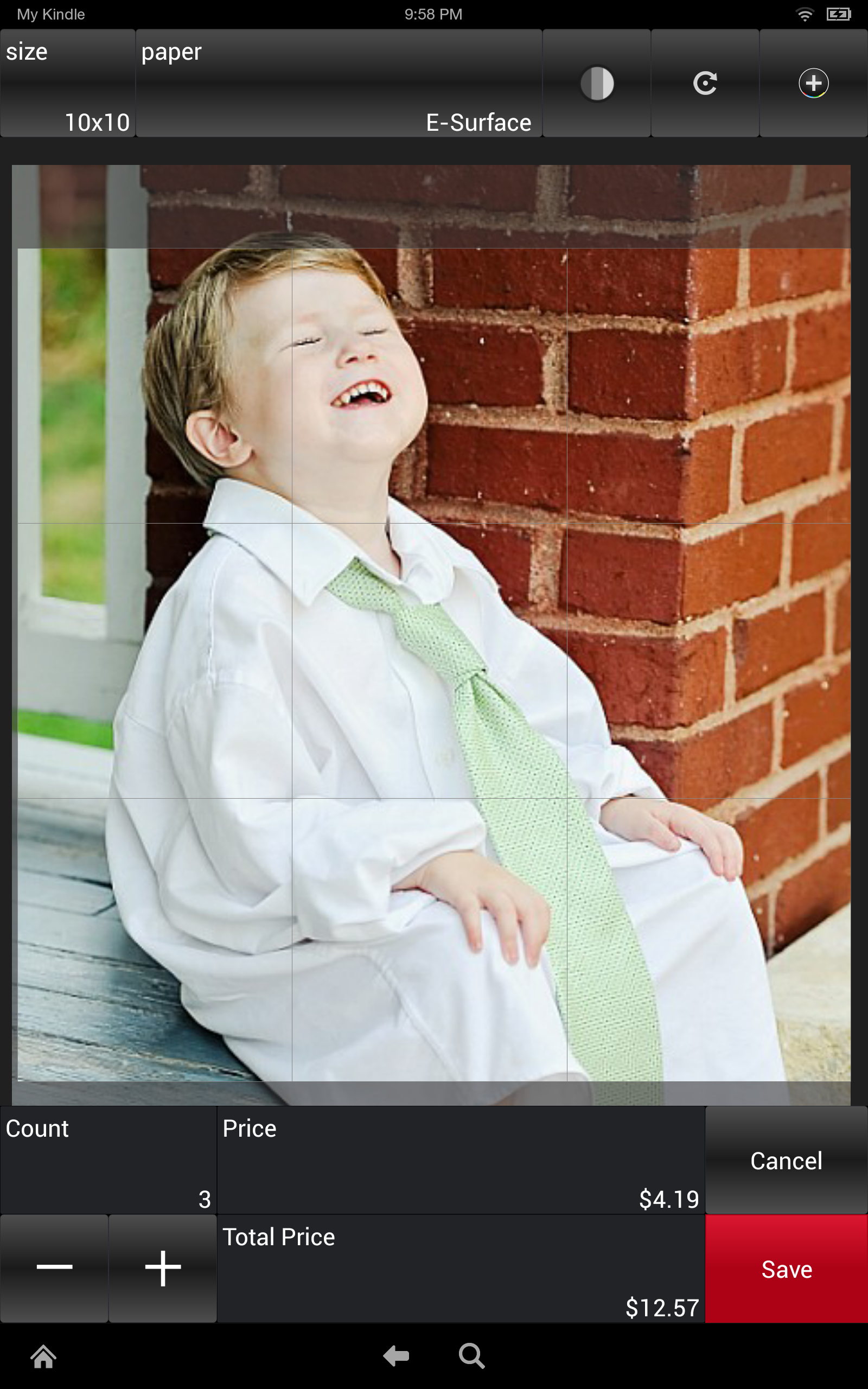 • Rotate, Crop, and Convert color photos to black and white before ordering.