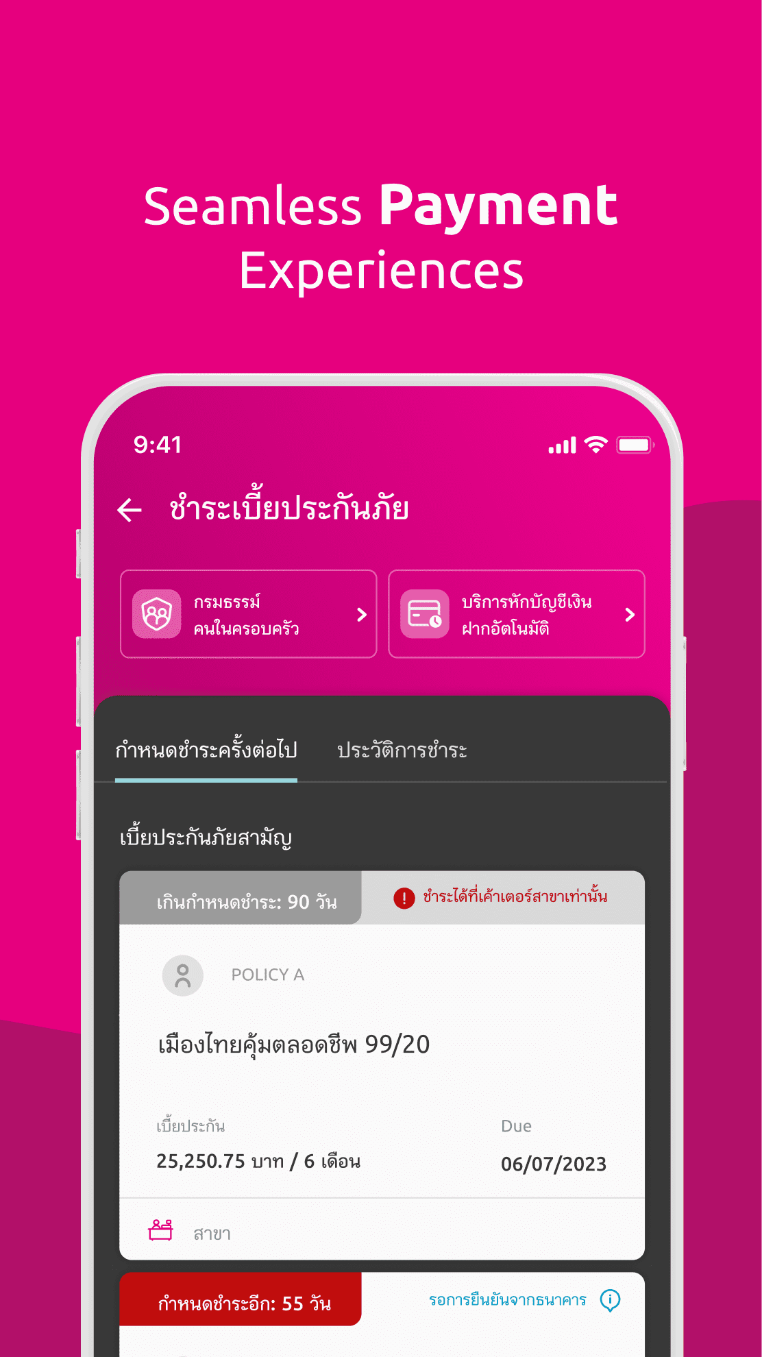 - Biometric login Log in with a face scan, fingerprint scanner or password. - Digicard Include group and individual insurance cards in one application - Policy portfolio Summary and include benefits according to policy type - Payment A variety of payment channels, whether it is a counter service credit card Or KPlus application - Hospital finder Find the location of the contracting hospital. Ready to compare and show coverage details - E-Claim Track and report the status of claim claims. - E-Policy owner service Can change personal information easily - Shared policies Can request access to the policies of family members And pay premiums to each other - Tele-medicine Online doctor appointment service and immediate claim submission
