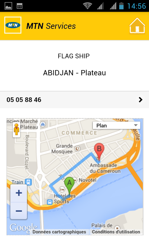 MTN services te fournit tous les services USSD de MTN. • Souscription internet mobile • Migration de profil • Numéros utiles • MTN Play • MTN Zik Plus besoin de tous les connaitre par cœur ou de déranger un ami pour demander comment effectuer une souscription. Retrouve facilement tes agences MTN avec une carte pour t'aider. Et reste toujours en contact avec nous via tweeter, Facebook et YouTube