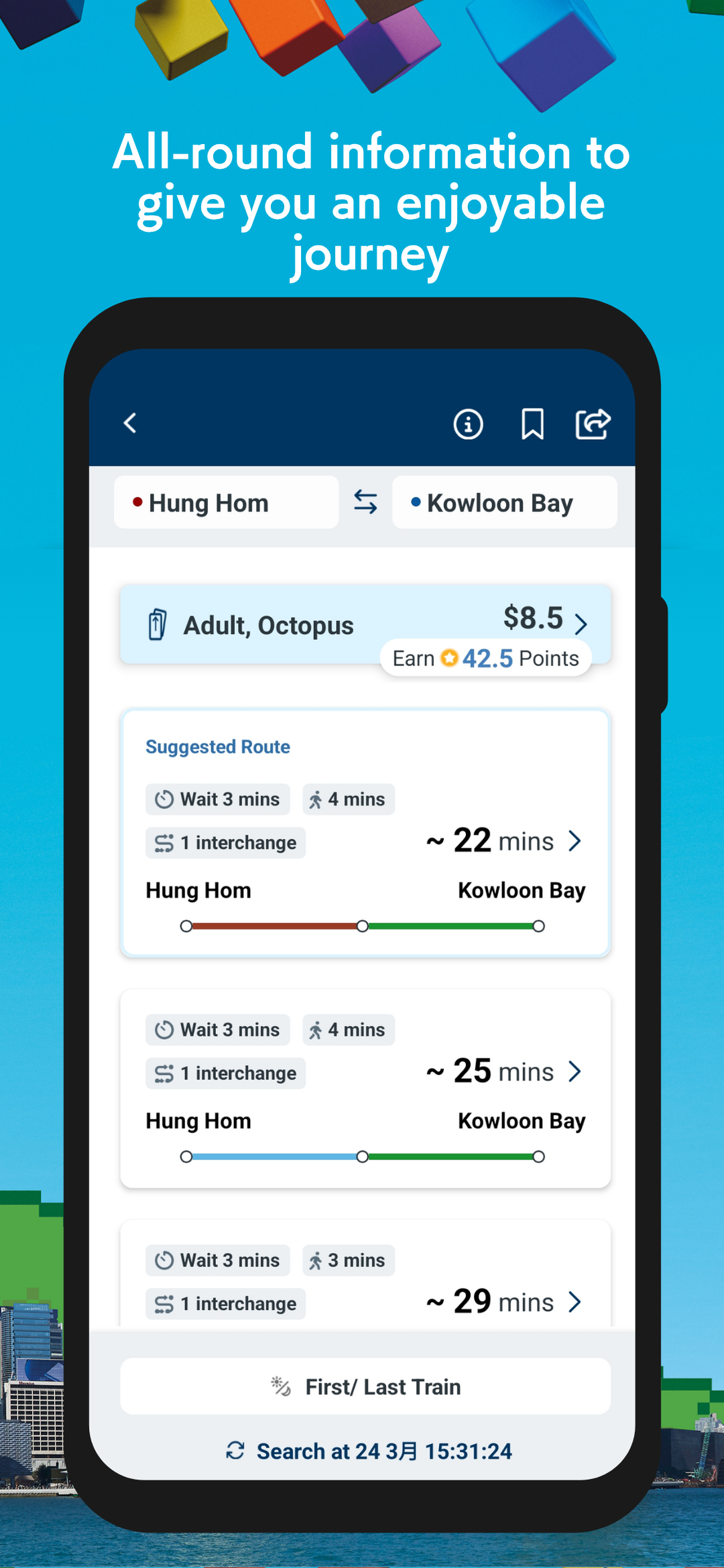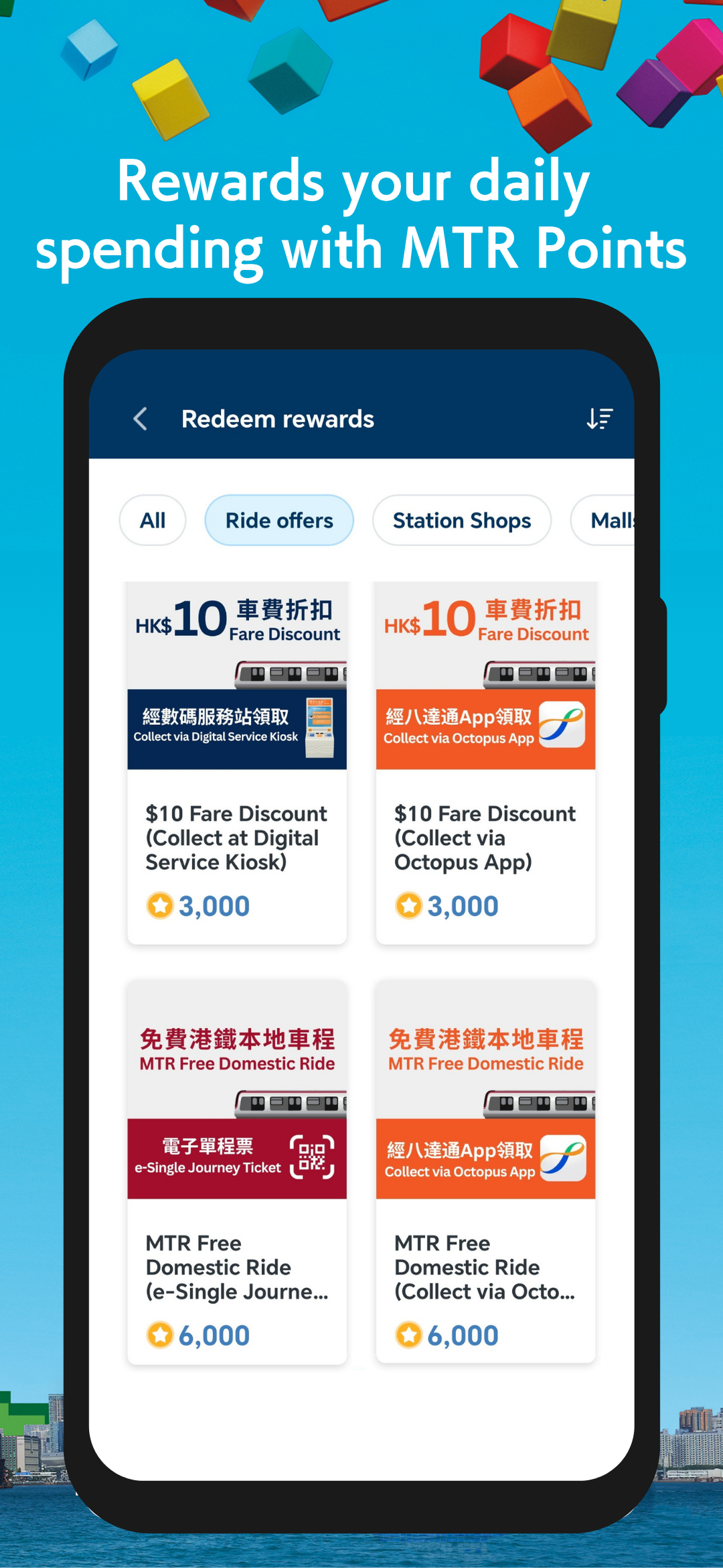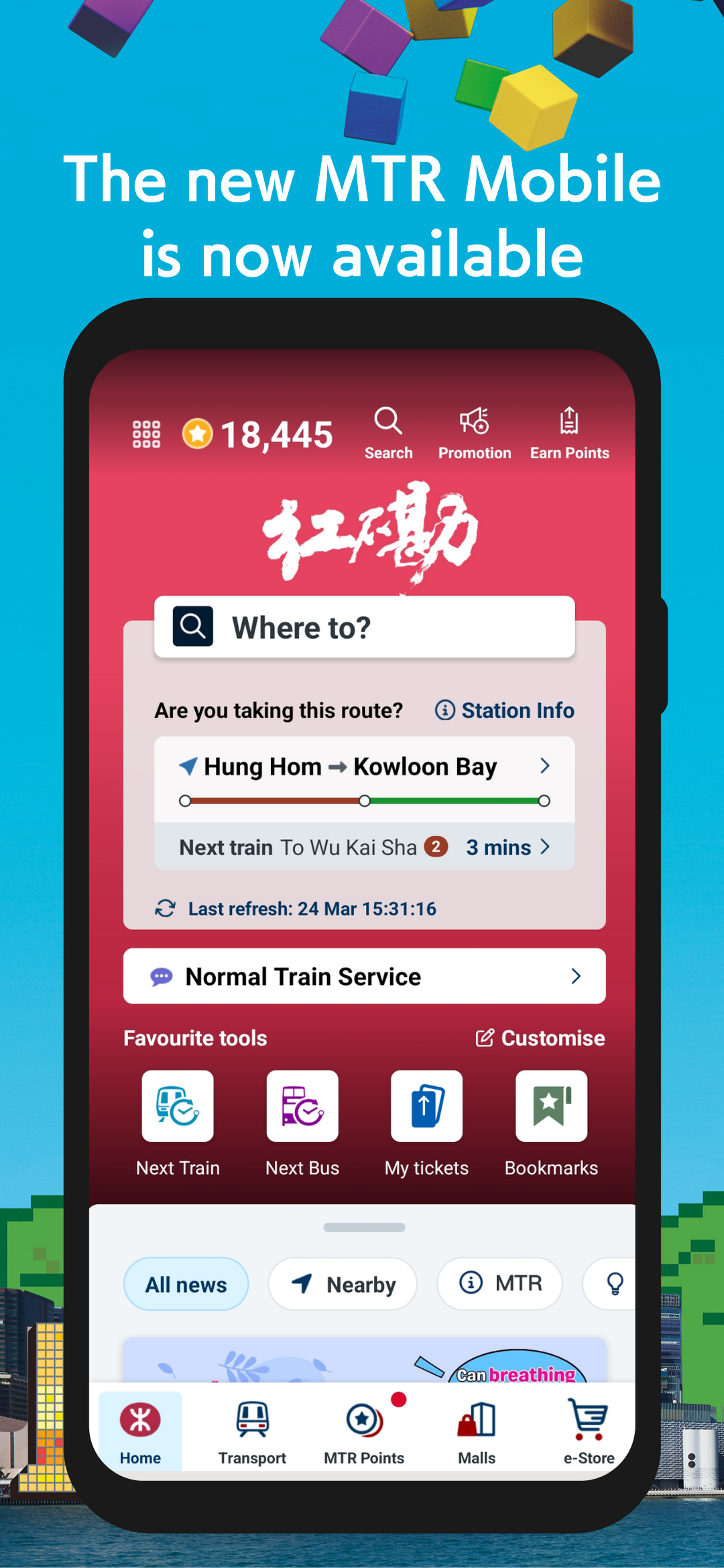 MTR Mobile's New Look: Enhancing Your Travel Experience! A More Enjoyable Journey ◆ Want to better plan your journey? Trip Planner provides estimated journey times, plus next train arrival times and car occupancy on a single screen, making journey planning a breeze! ◆ Need quick access to your frequent destinations? The homepage shows suggested routes and next train arrival times to your frequent station, saving you from searches and helping you make the most of every minute! ◆ Looking for the latest news? MTR Mobile offers MTR service updates, promotions, and lifestyle articles to make your daily life more exciting. [Earn MTR Points While You Travel] ◆ Want to earn points for fabulous rewards? Whether you're taking the MTR, shopping at MTR Malls or Station Shops, or even buying tickets and MTR souvenirs through MTR Mobile, you can earn MTR Points to redeem for free rides and various exciting rewards! ◆ Looking for something to do while commuting? Game Arcade is now live, allowing you to play games and earn MTR Points, making it easier to redeem rewards. Experience the new features for a more rewarding journey with MTR Mobile! Visit www.mtr.com.hk/mtrmobile/en for more information on MTR Mobile