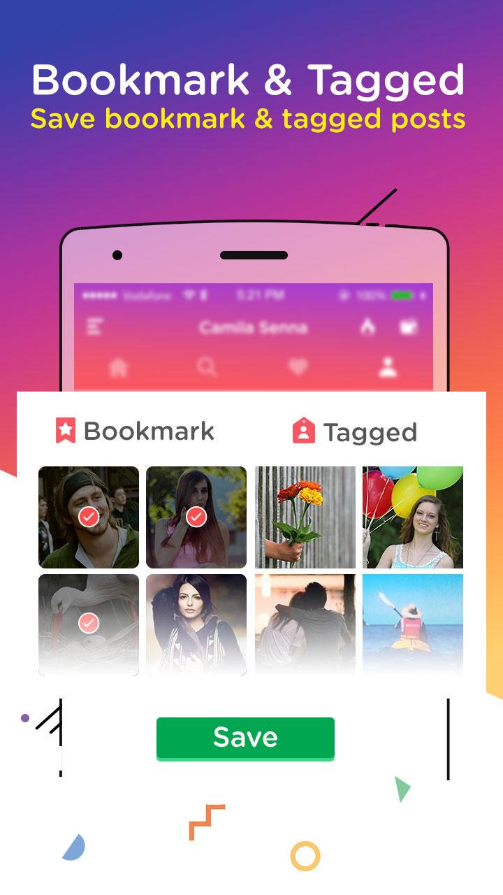 Popular/Bookmarked/TaggedExplore millions of popular posts around the world and save them in your gallery .You can download your bookmarked posts from your profile with this Instasaver app. Save tagged photos and videos of any public user or from your profile and repost them easily with this Insave app.