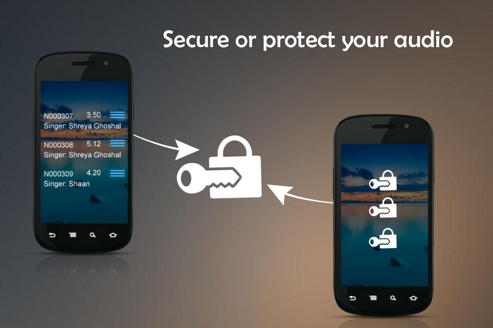 You select your audio or music file encrypt this Music or audio file. Also any time you need any music or audio file to decrypt this music and use easily. Also you give different password pattern.