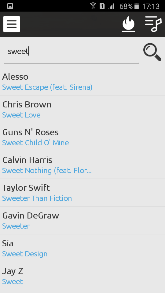 When performing a search with the application you can find the letter, translation, video and websites on the song or artist.