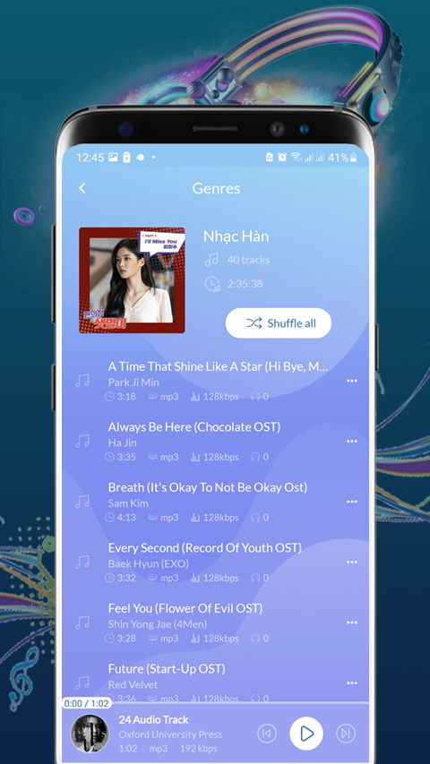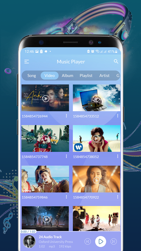 Music Player is the best multimedia player for Android. This application is a simple player but powerful can play multi-format media (audio and video). Music Player is easily manage and play videos and songs. Audio Player can play all most of popular Audio Format and High quality: It’s not only a MP3 player. Music Player supports all music and media formats including MP3, MIDI, WAV, FLAC, AAC, APE, etc. And you can play them in high quality. Video Player: Can play HD videos up to 4k, 8k UHD video quality with easy controls. Support ALL video formats, including MP4, FLV, MKV, MPG, M4V, AVI, MOV, 3GP, FLV, WMV, RMVB, TS, etc. KEY FEATURES: 🎵 All format video player : Supports most of popular video formats for your Android device. 🎵 High quality: Ultra HD video player, supports 4K and all types of video formats. 🎵 Folder Browser: Easier and faster way to find and play your videos. 🎵 Equalizer Effect. 🎵 MP3 music player, songs player, media player, MP3 player with high sound quality. 🎵 Manage and share songs easily on social media apps. 🎵 Favorite songs and custom your playlist in Music Player. 🎵 Easily search songs by keywords. 🎵 Lock screen controls and play in notification bar. 🎵 Sleep timer in Video and Music player. 🎵 Headset control for this default music player. 🎵 Identify ALL video files on your device and SD Card automatically. Hope you enjoy with Music Player. Share your favourite track on social media and let your friends know what you are listening!