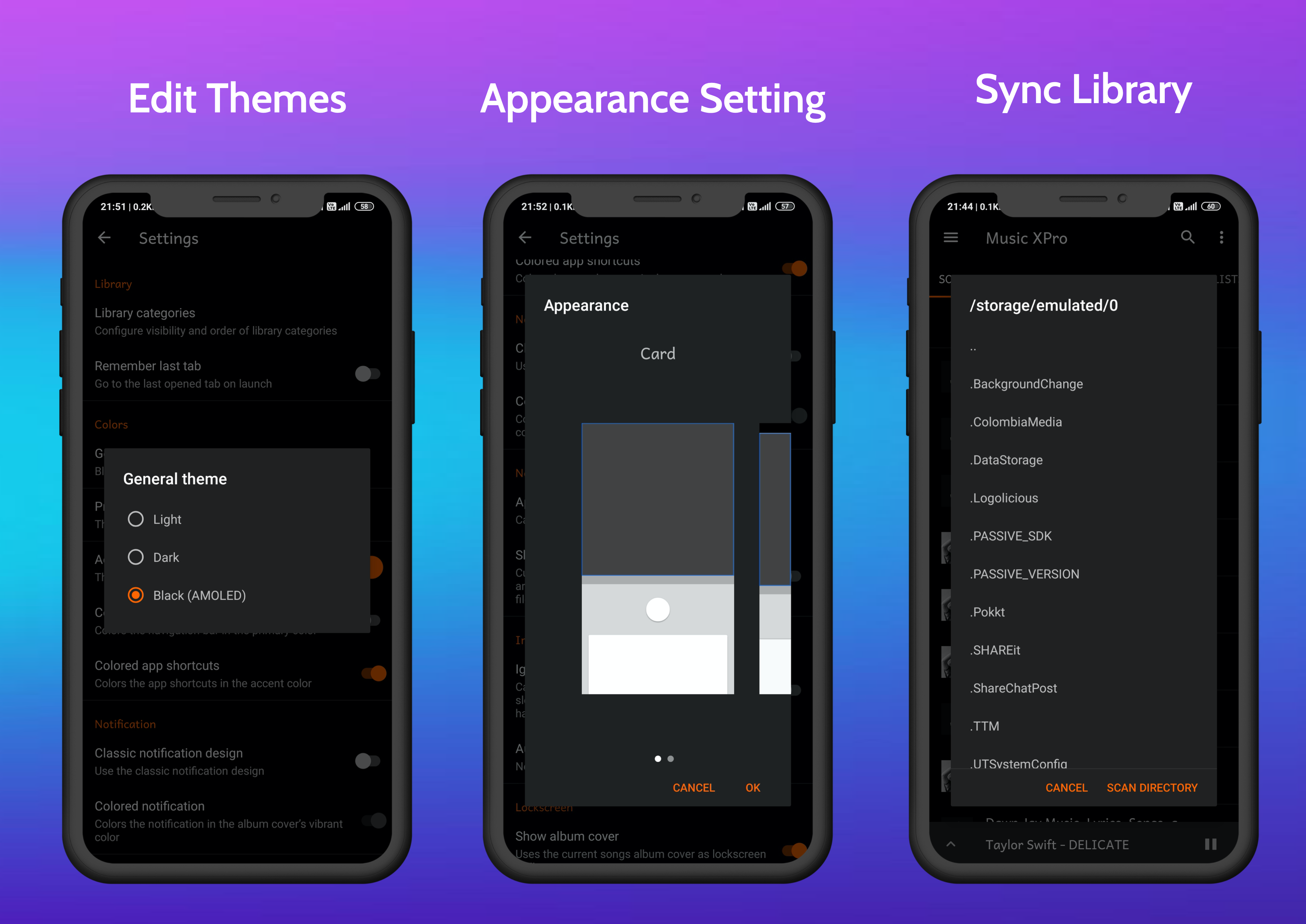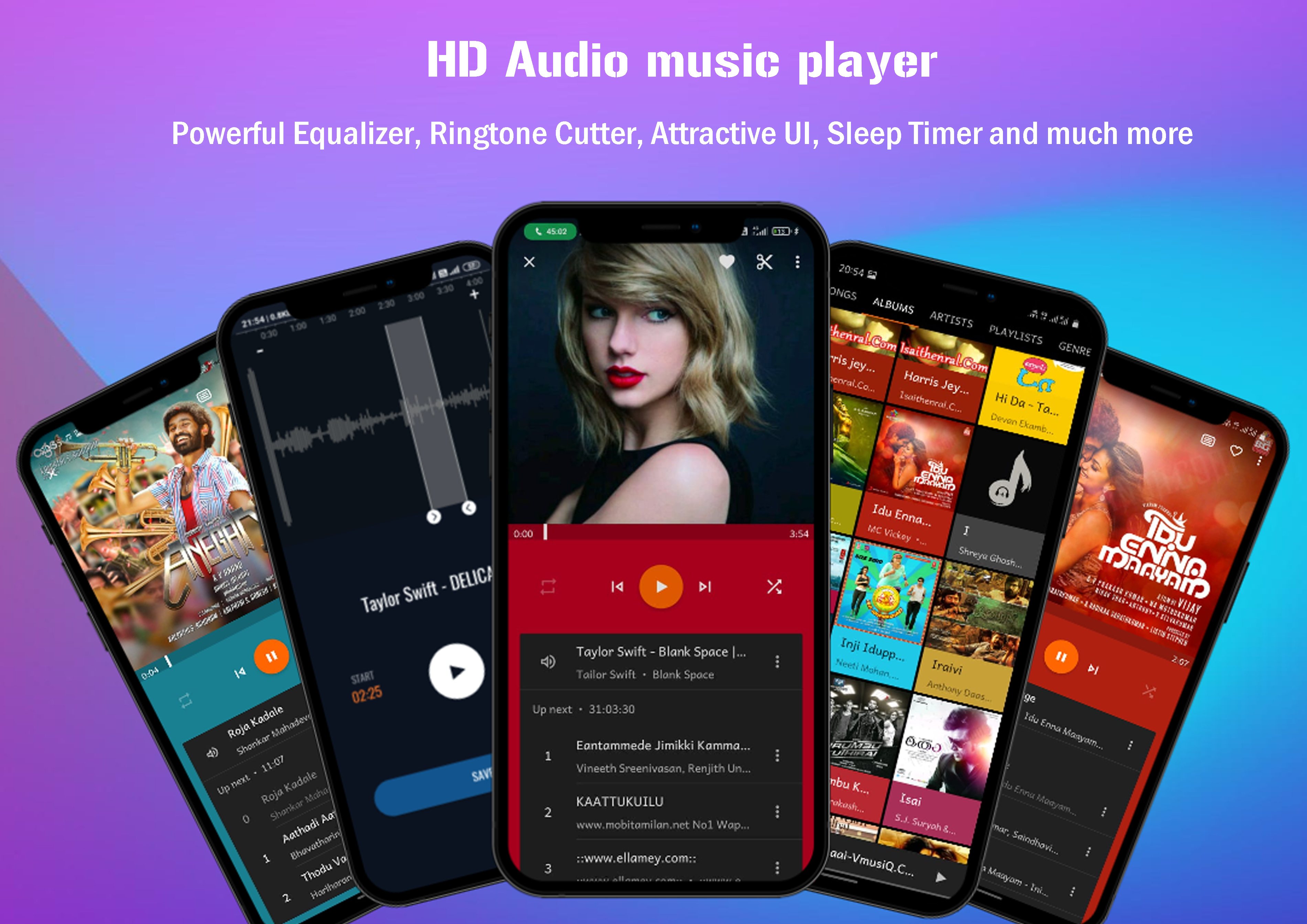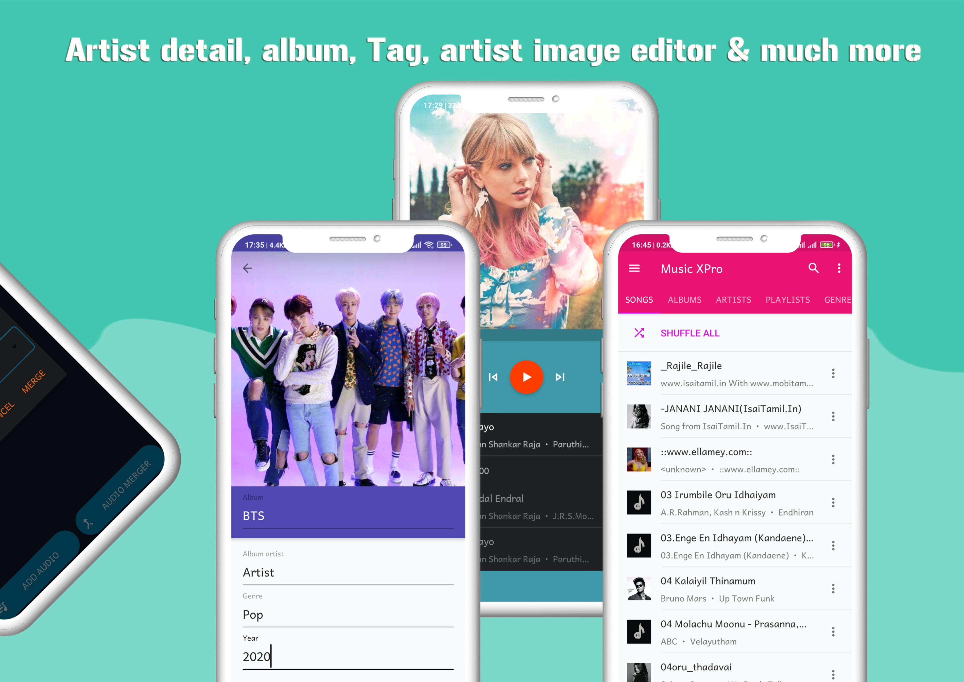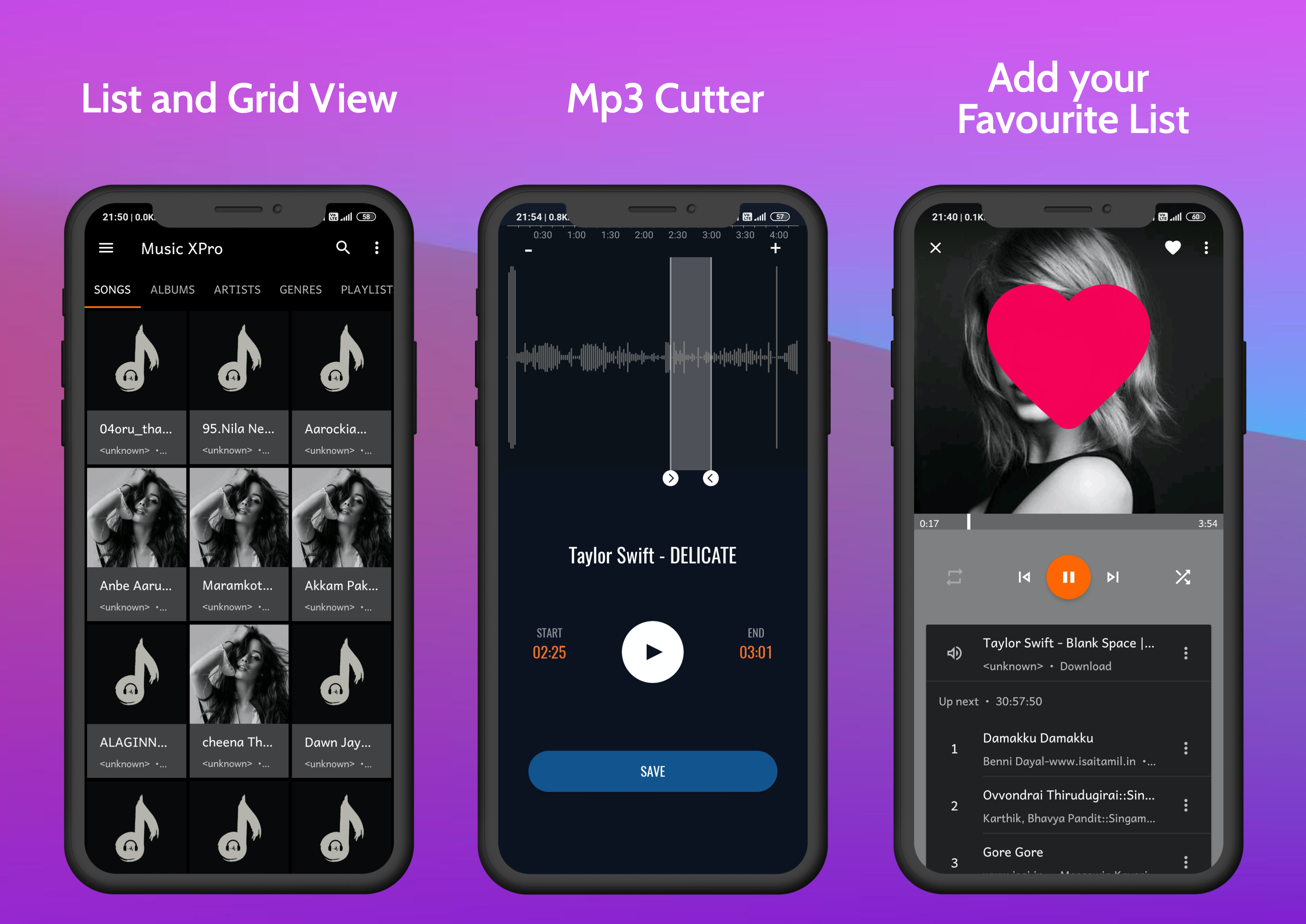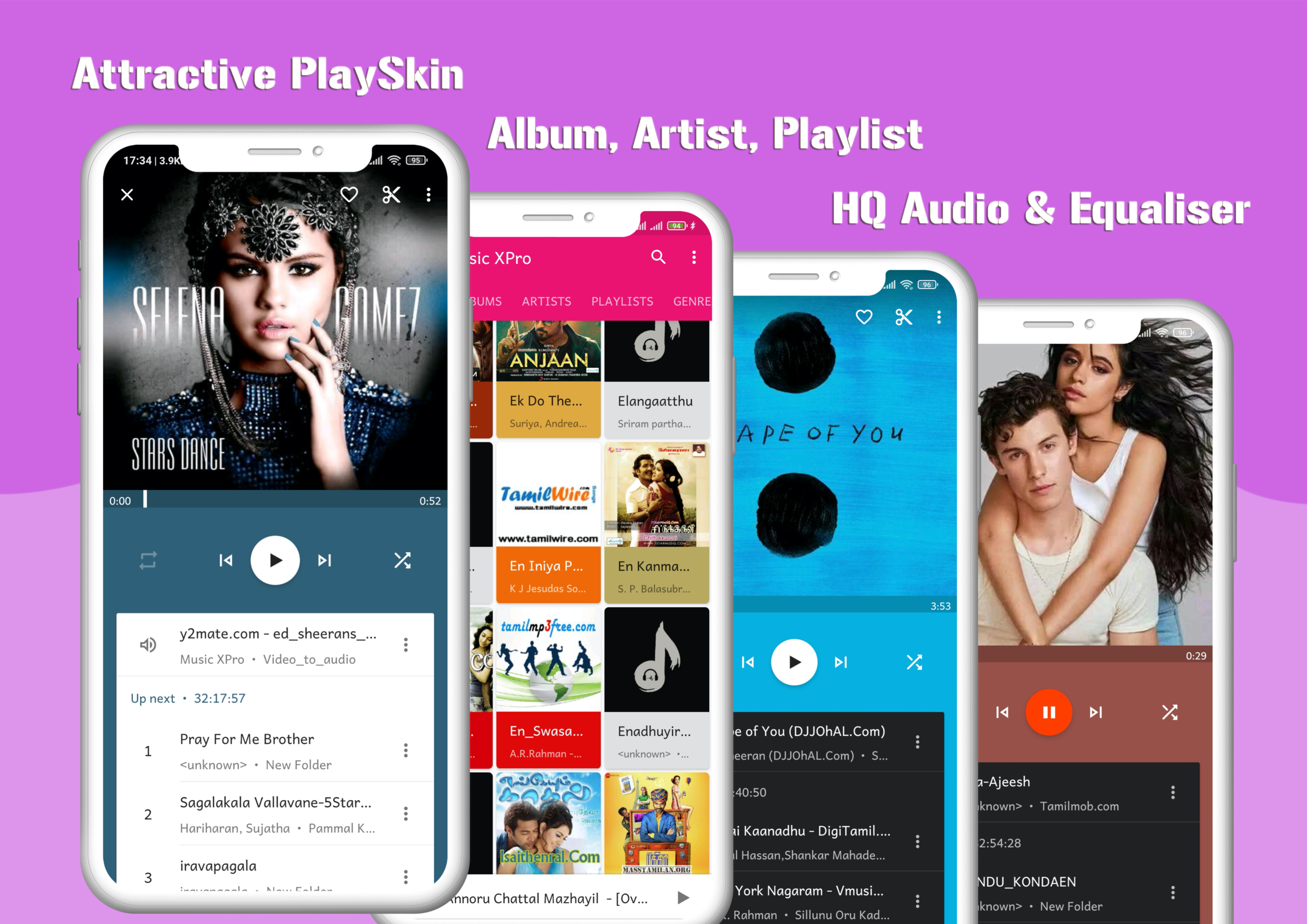 Music XPro for all android device and provides a powerful music play functionality and the best user interface. Audio Player for All Type of Audio Formats: Music XPro supports all music and audio formats including MP3, MIDI, WAV, FLAC, AAC, APE, etc. And play them in high quality. Key Features ♪ Video to Audio, Audio cutter and joiner and much more. ♪ View by all songs, artists, albums, folders and playlist. ♪ Support all music and audio formats, like MP3, MIDI, WAV, FLAC, AAC, APE, etc. ♪ Offline music player, songs player, audio player, mp3 player with high quality. ♪ Powerful equalizer with bass boost, reverb effects, etc. ♪ Play songs in shuffle, order or loop. ♪ Scan all the audio files automatically, manage and share songs. ♪ Favorite songs and custom your playlist in mp3 player. ♪ Easily search songs by keywords. ♪ Lock screen controls and plays in notification bar. ♪ Set songs as ringtone in offline music player. ♪ Useful for workout. ♪ Sleep Timer. ♪ Stylish layout and themes. ♪ Widget supported in this powerful audio player. More Options: Features of Music Player 1. Browse songs in 6 different ways from the app (Playlist, Genre, folder, Artist, Album and songs). 2. Full widget support with list of songs. 3. Play songs directly from folder inside the App. 4. Elegant themes are available in two sets. 5. Create playlists as per your mood and add songs to them. 7. Remove annoying clips from Music Player while scanning the app. 8. Can set Ringtone within the music player. 9. 5-band equalizer with powerful bass and virtualizer with reverb settings. 10. Play songs in a selective order by adding to the currently playing list through Add to Queue feature. 11. Share songs that you are currently listening on social media apps. 12. System equaliser support is provided along with in-app equaliser within the Music XPro. 14. App is designed based on the concept of material design to make the experience native for Android users. 15. Powerful Beats Equalizer Boost your music experience with 10 amazing presets, 5 bands, bass booster, music virtualizer & 3D reverb effects adjustments and much more. 16. Built-in MP3 cutter - Ringtone Maker Easily cut the best part of the audio songs and save it as Ringtone/Alarm/Notification/Music file etc.