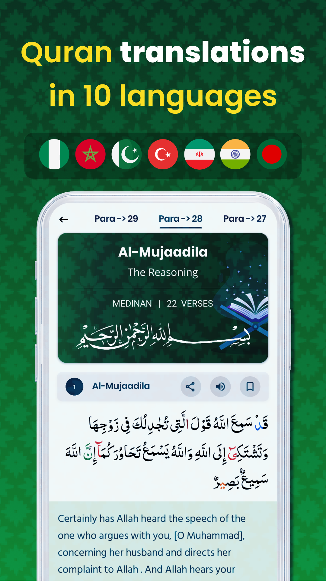 Ramadan Special by Muslim Hub: Al Quran, Prayer Times, Azan, Qibla, الاذان واوقات الصلاة, Quran No matter where you are and how far from home, nothing should come in the way of your prayer (الصلاة). And nothing will with this Muslim Hub: Quran Prayer Times app created to make Muslim prayer times convenient. Handy and easy-to-use, the Holy Quran app is equipped with all the verses of the Holy Quran. The verses in Surah and Para are titled separately to make your prayer times smooth and dedicated. مسلم برو (Muslim hub) is an Islamic prayer app that offers much more than a peaceful time reading the Holy Qoran. Take a look at what Muslim Hub: Quran Prayer Times الاذان واوقات الصلاة has to offer. Features of the Holy Quran App Starting from translations to finding the right time for Namaz, to Azan and Tasbih, this all-in-one Muslim pro app built for those following Islam is the best choice available today. Moreover, everything is as easy as a click! ✨Read the verses of the Holy Quran from anywhere and anytime With this Muslim pro app, you’re equipped with reading the verses of the Quran at any time and from anywhere. Besides free access to the Islamic verses in Surah and Para, you can also bookmark your favorite verses from the Holy Quran. ✨Listen to the verses; save and share If you want to listen to the scriptures of the Holy Qoran and meditate in the verses, you can click on the audio symbol under each verse. If it is something you relate with, you can save it for future references. ✨Translations in 10 languages This Muslim hub: Quran Prayer Times app offers translation in 10 languages, which means people can read the verses in a language that they are most comfortable. These include Bengali (Bayaan Foundation), Bengali (Fozlur Rahman), Bengali (Majibur Rahman), English (Abdul Haleem), English (Sahih International), Hindi (Farooq/Nadwi), Indonesian (Bahasa), Turkish (Diyanet Isleri), and Urdu (Muhammad Junagarhi). Additionally, one can also find translations in three languages to use all other app features, including English, Bangla, and Turkish. Muslim Hub: Quran Prayer Times app’s intention is to make Muslim prayer times as convenient as possible. ✨ Madhab- Prayer Time Conventions Find the prayer time conventions listed within the app settings for you to choose. The list includes the Angel of Fajir and Isha at different Islamic institutions and committees around the world. ✨Salat Salat, which is one of the five pillars of Islam is very important to Muslims. Muslim Hub: Quran Prayer Times respects this ritual of praying five times a day in a set form. These Muslim prayer times depend on the position of the sun from sunlight to sunset. ✨ Qibla Qibla is the direction of Kaaba, in which direction a Muslim person turns towards to offer prayers. But knowing that exact direction of Qibla at all times is not possible considering we are all always on the move or at work. ✨Tasbih This Muslim Hub: Quran Prayer Times app also makes glorifying Allah easier with an effective counter to count how many times you have recited your Dhikr. All you have to do is click after every recital, and you’ll know how many times recited His name. ✨Azan and Athan Notifications Receive notifications at all Muslim prayer times from the مسلم برو(muslim pro) so you can prepare for Azan or Athan. You will never miss a call to prayer (الصلاة) owing to the Azan notifications called out five times a day so you can offer Namaz. ✨Find a Mosque near you Muslim Hub: Quran Prayer Times asks to allow location settings on to use this app so that it can prompt you with the nearest Mosque in your area or vicinity. So, if you are travelling but still do not want to miss out on offering Namaz in a mosque, you can do so without having to search for one anywhere else. This Holy Quran app will directly connect you to Google Maps to make finding the directions easier.