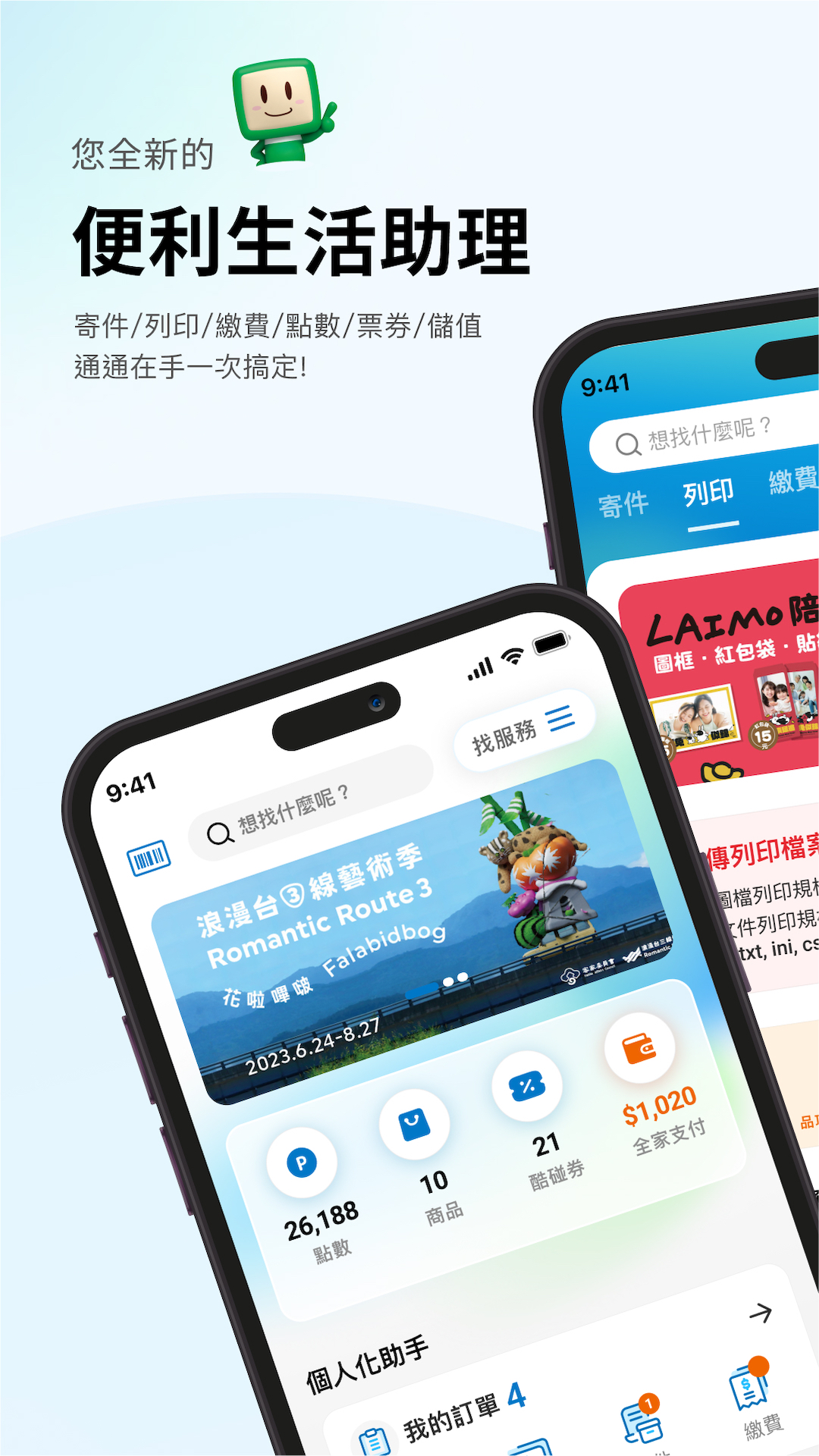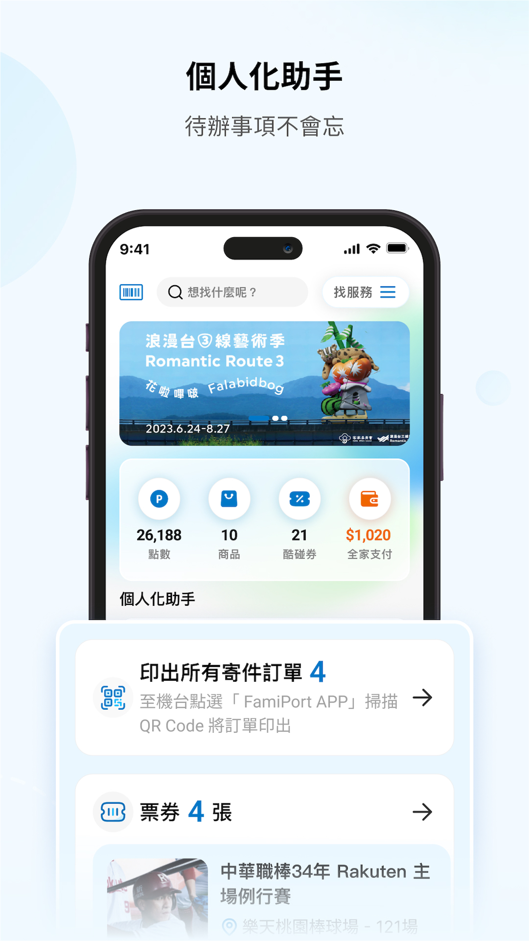 Want to enjoy convenient services anytime and anywhere? Download FamilyMart’s FamiPort mobile app now! This FamilyMart's original personalized assistant allows you to no longer forget to pay bills, worry about printing labels for mailings, purchasing tickets, etc. Just open the APP and you will see all your to-do items at a glance.