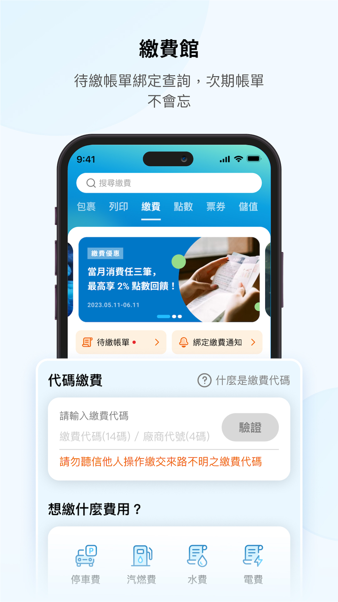 [Mobile payment]: Check Taiwan's parking fees, traffic tickets, gas and fuel fees, eTag, cable TV, telecommunications fees, code payment, water and electricity bills, enter the binding, and quickly check and pay.
