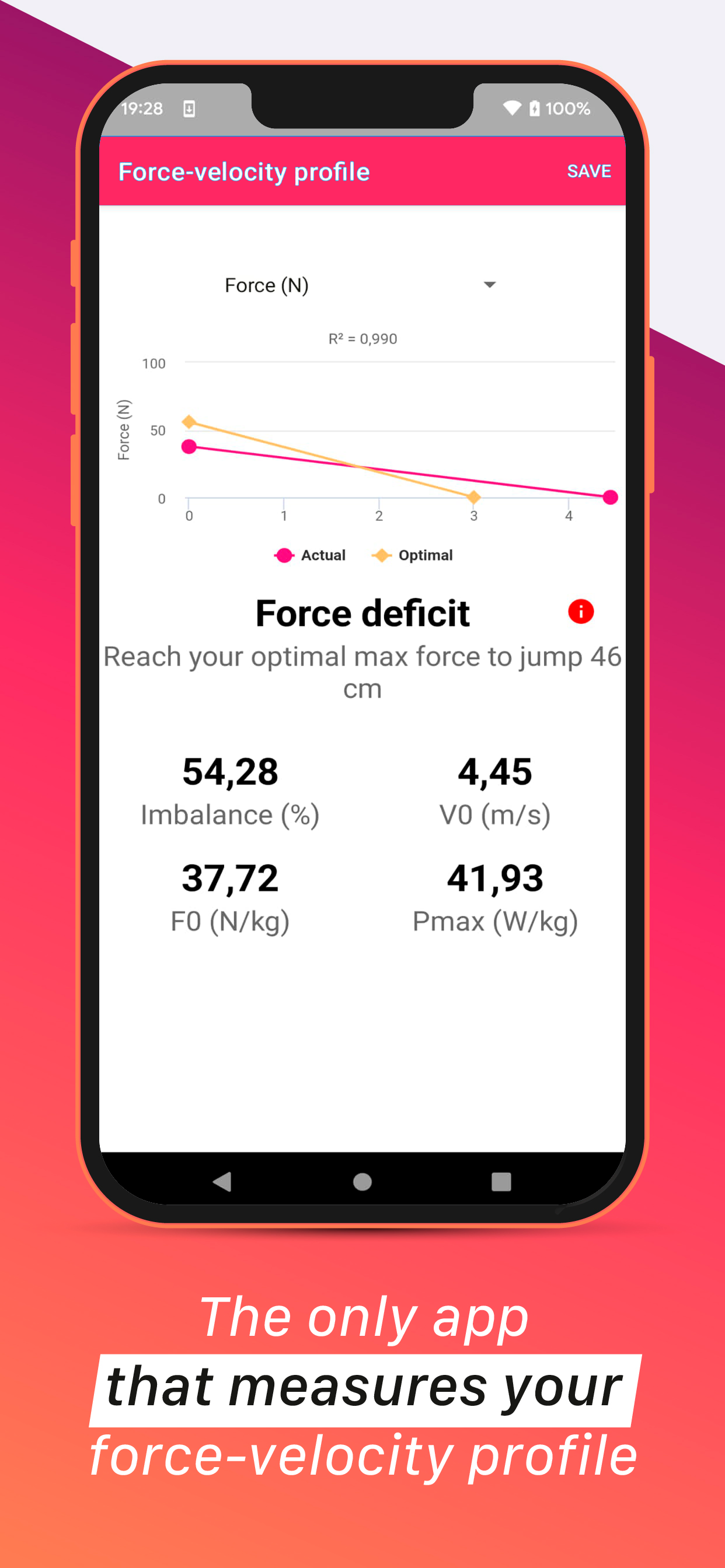 My Jump Lab uses the advanced sensors and camera of your device to measure performance in a simple, reliable and validated way, without the need for any additional hardware. For example, barbell velocity can be measured in real time using artificial intelligence, directly from video captured with your camera.