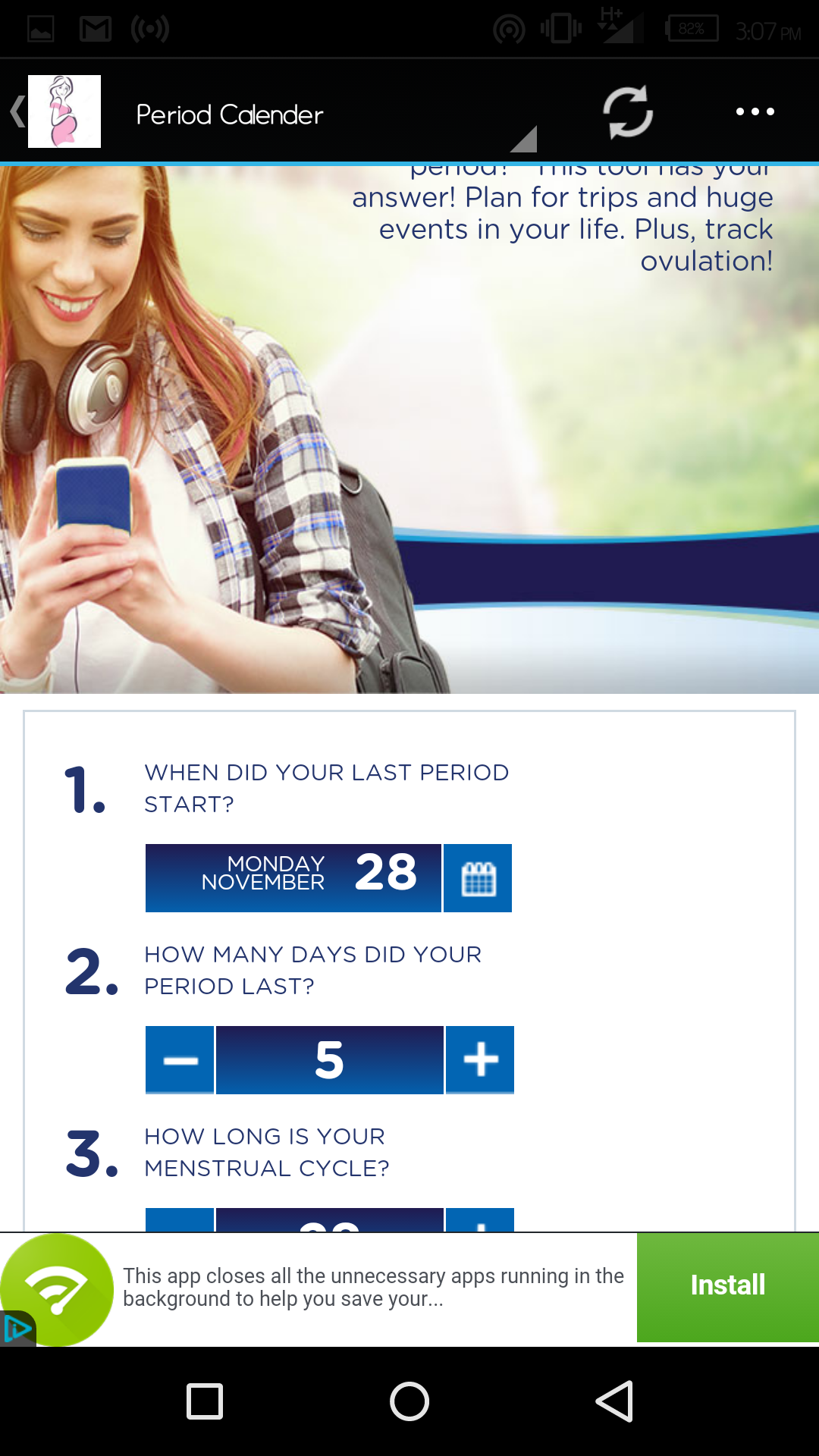 My Ovulation & Period Tracker is an all inclusive app. It provides all you need a tool to record, monitor your own menstrual cycle, especially useful for women wishing to conceive, or birth-control, contraception. My Ovulation & Period Tracker is the app for every lady giving you the freedom to worry less and about your period coming at sudden times. It helps keep track of the total menstrual cycle. Its the ultimate app to keep every lady happy! My Ovulation & Period Tracker provides the following; a. A comprehensive calendar and personal health log: records your monthly period and calculate ovulation date does a check for pregnancy chance every day notification for period, fertility and ovulation tracker .Various available notes (start date/ ended date/ symptom/ mood/ medicine, etc.) for you to describe and monitor each period b. Period Diary: Will record your past period Will predict the coming period other functions include;setting for Cycle length,1 day reminder before fertile time,count down to the pregnancy due date,reminder for the coming period and ovulation days, reminder for medicine The app is also designed to send daily notifications on ovulation matters to users