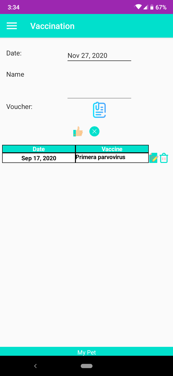 Control of my pets' information, vaccinations, deworming and the most important dayli activities for my pet