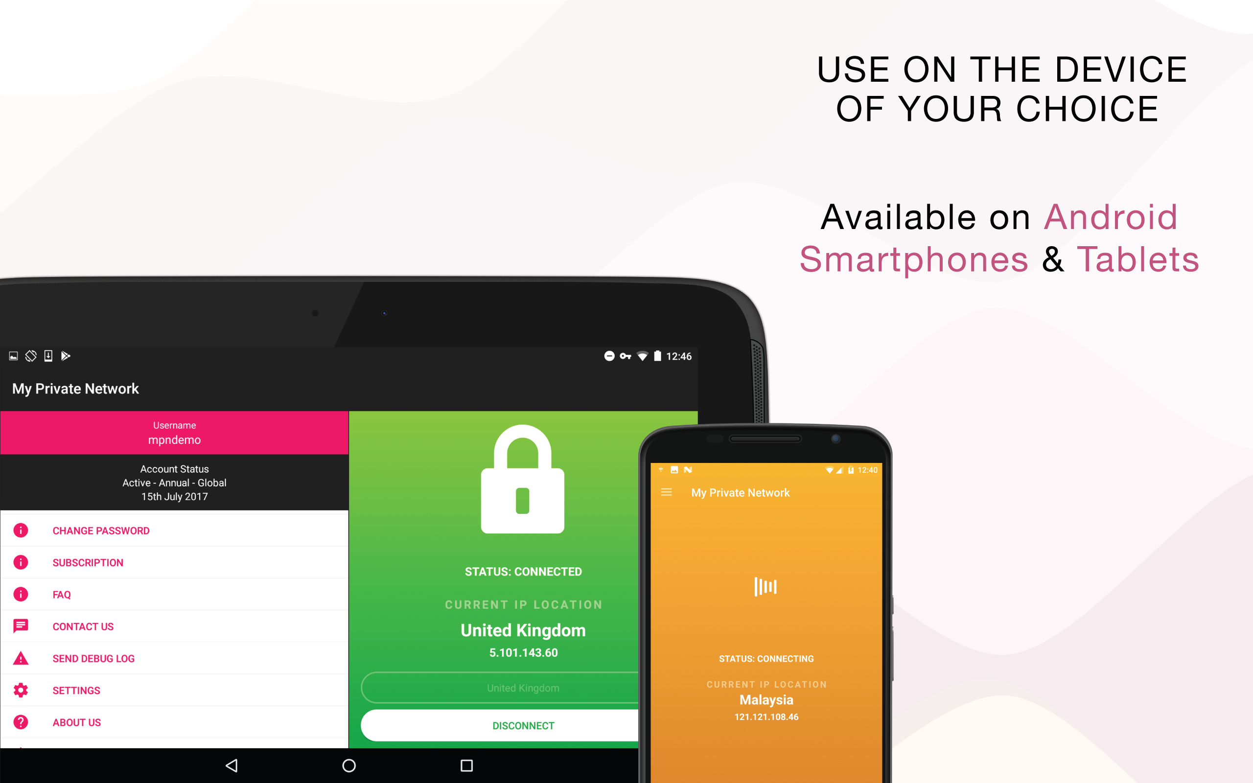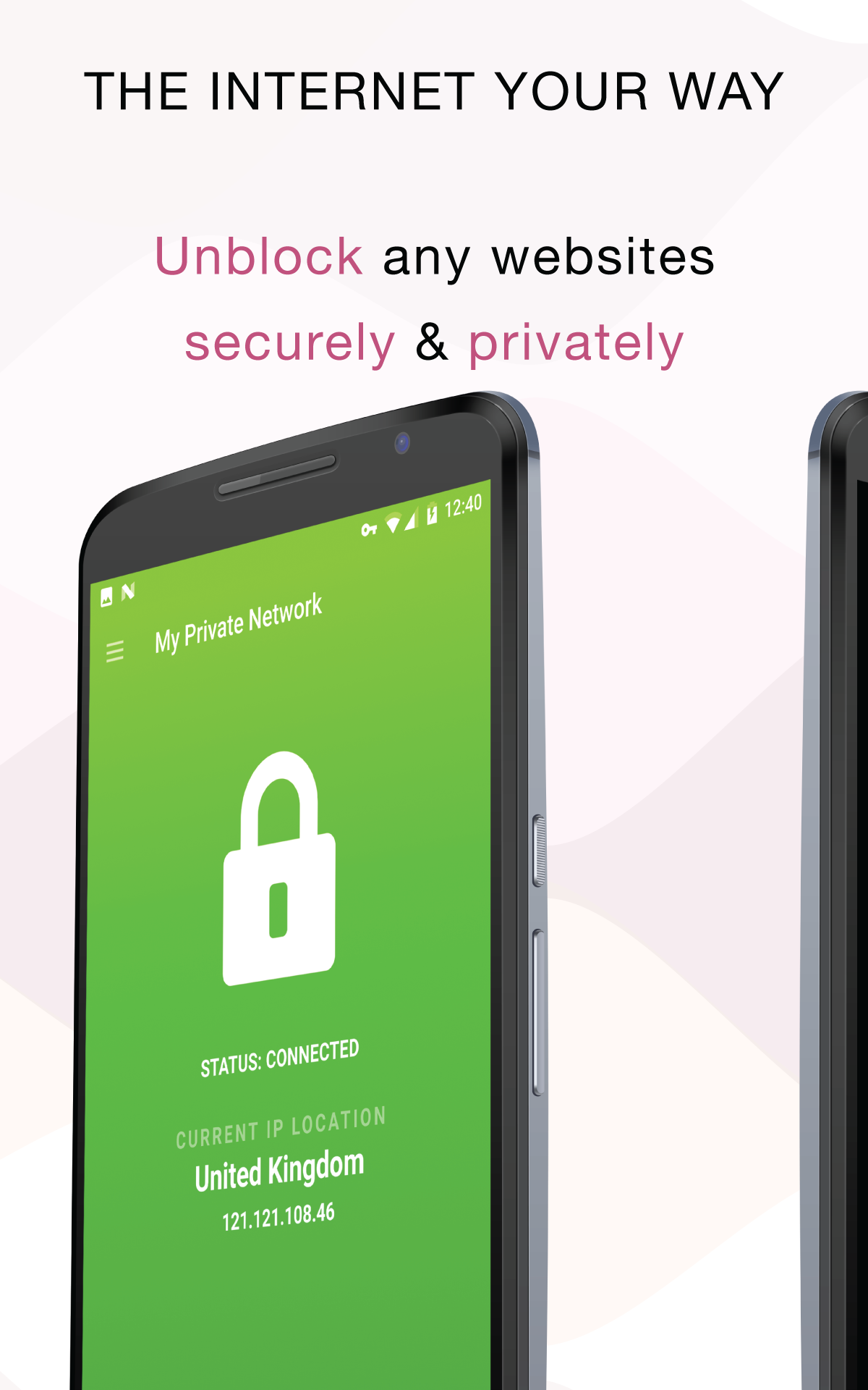 Fast VPN speed and secure VPN connection. Bypass government censorship and region restrictions.My Private Network’s FREE VPN Manager app for Android allows you to connect to our VPN servers in 44 different countries (and counting!). Using the OpenVPN SSL protocol, this allows for a faster and more secure VPN connection than using the built-in Android PPTP and L2TP protocols.
