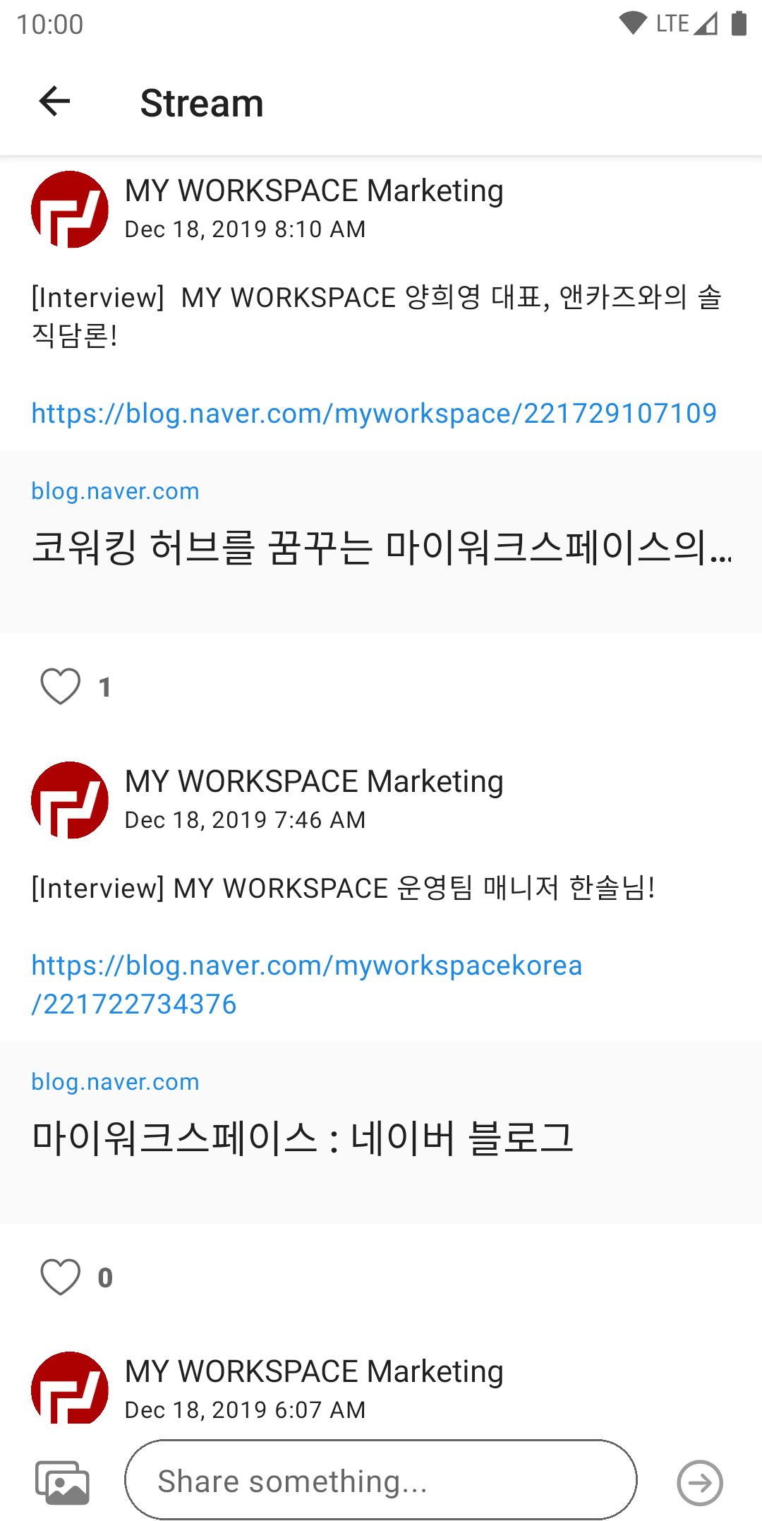 Share Office My Workspace that focuses on you! Easily check on-going events from your room booking through the community app on your mobile. Expand your networking opportunities by communicating with other members of My Workspace! # Easy room reservation / cancellation Book and cancel meeting rooms at all locations with a single touch. # Membership Credit Check You can check at a glance the usage of our company credit. # Check the latest announcements and event information You can also easily check our announcements and interesting event information. # Apply for membership benefits You can apply for a variety of benefits in the field of management, technology, and welfare that only My Workspace members can enjoy. # Communicate with tenants If you want to communicate with the members who live in My Workspace, network through the member finder. (Information disclosure members only)