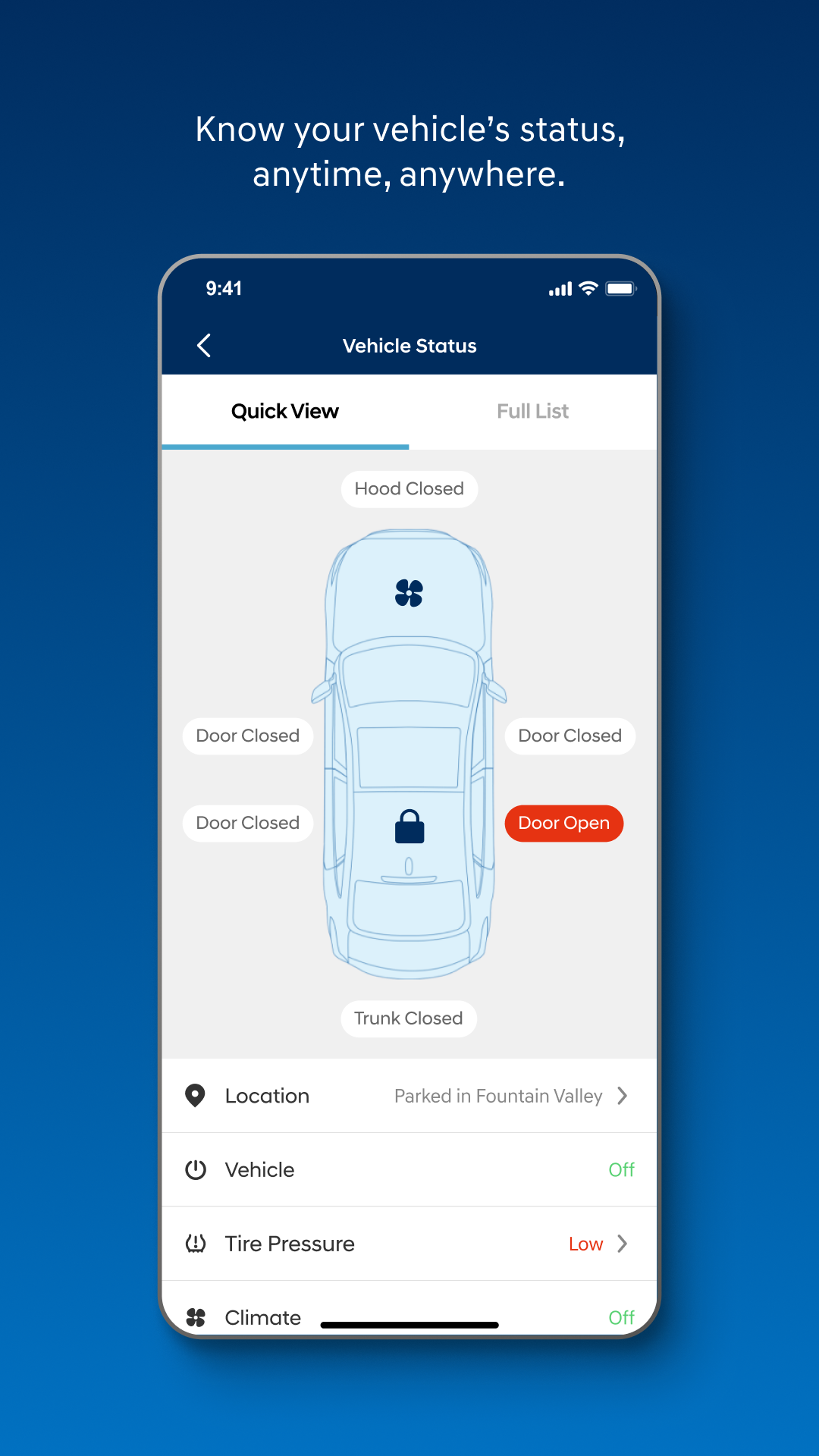 • Check Vehicle Status (supported on select 2015MY+ vehicles)