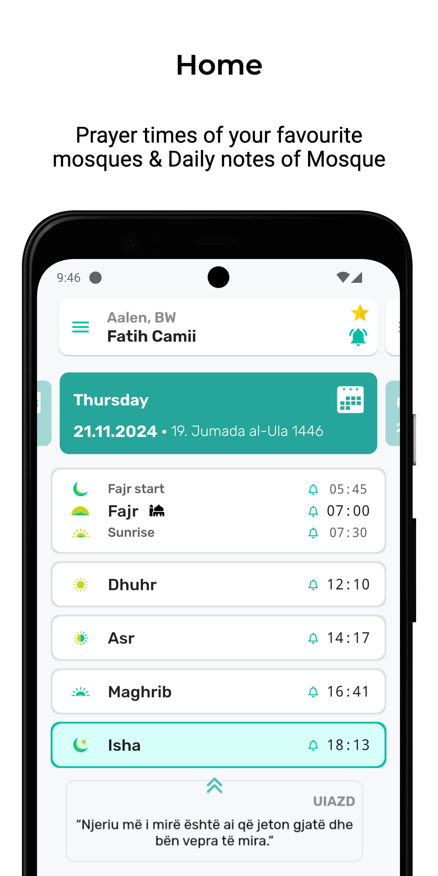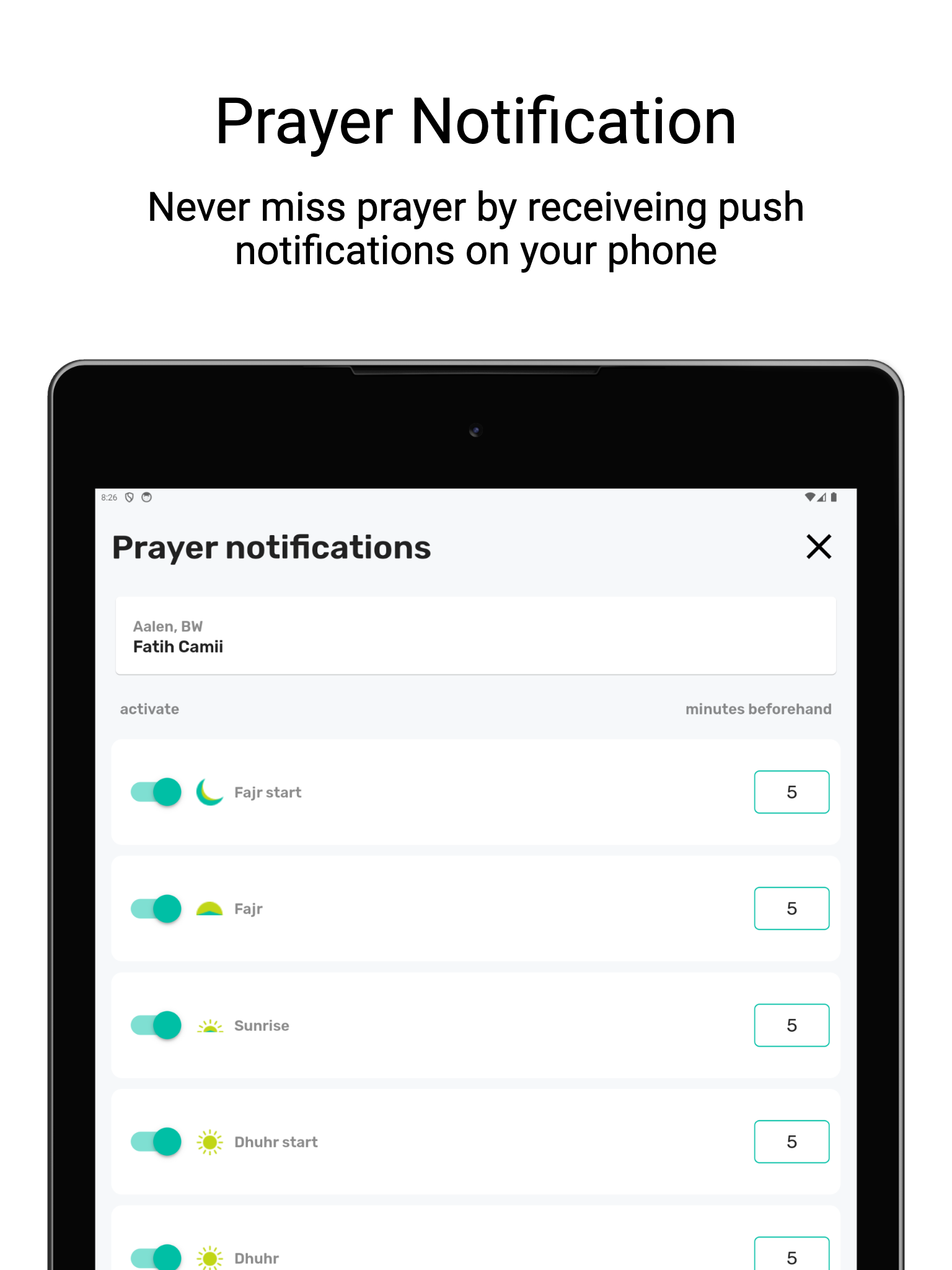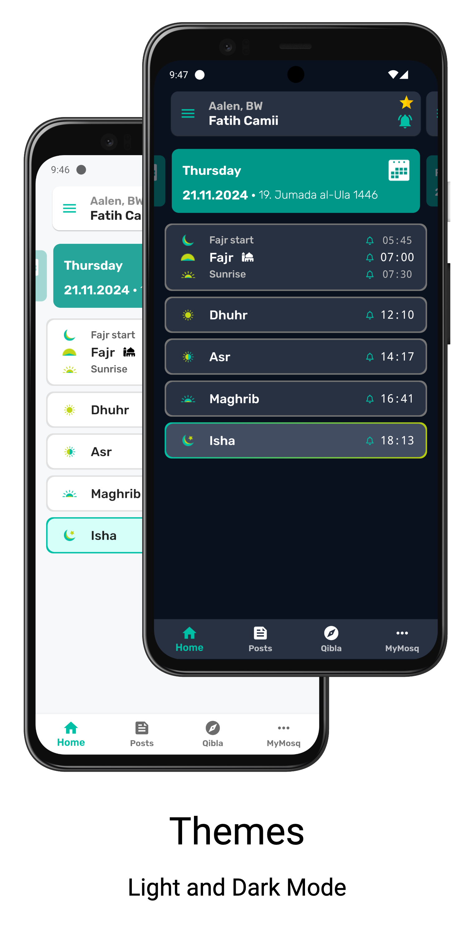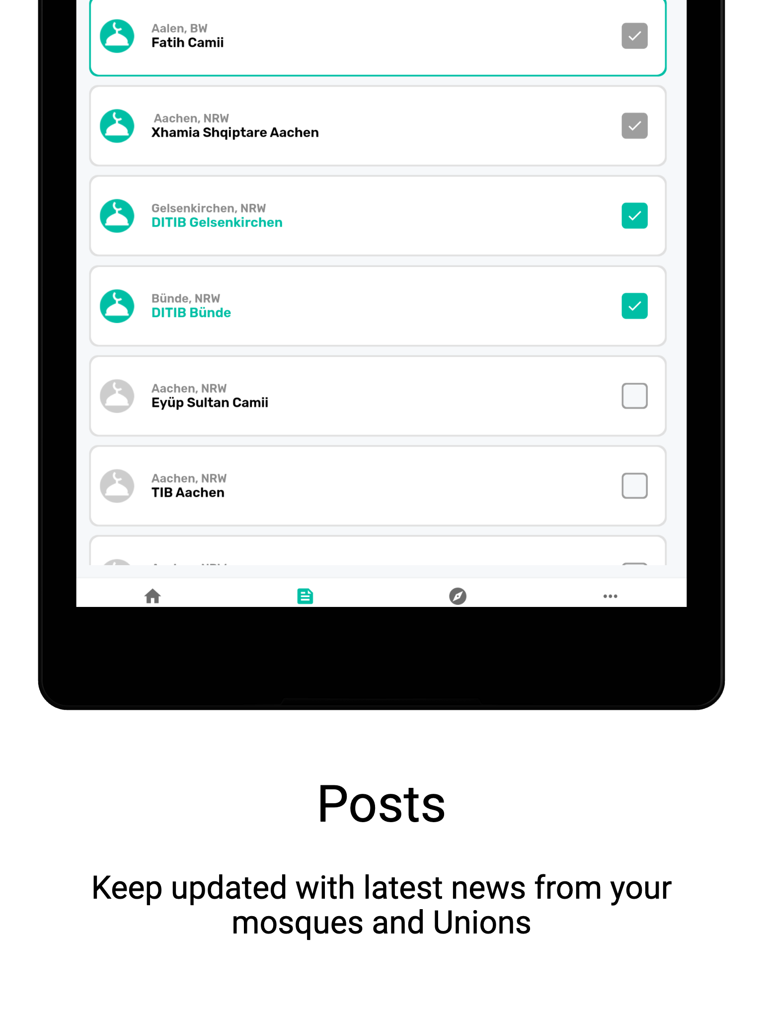 MyMosq is a smartphone app and a web platform offered to the Muslim community, which enables one to: - find the nearest mosque - get detailed information about specific mosques - show daily prayer times including mosque-adjusted times - subscribe to a mosque for daily notes - subscribe to push notifications for news from different mosques simultaneously