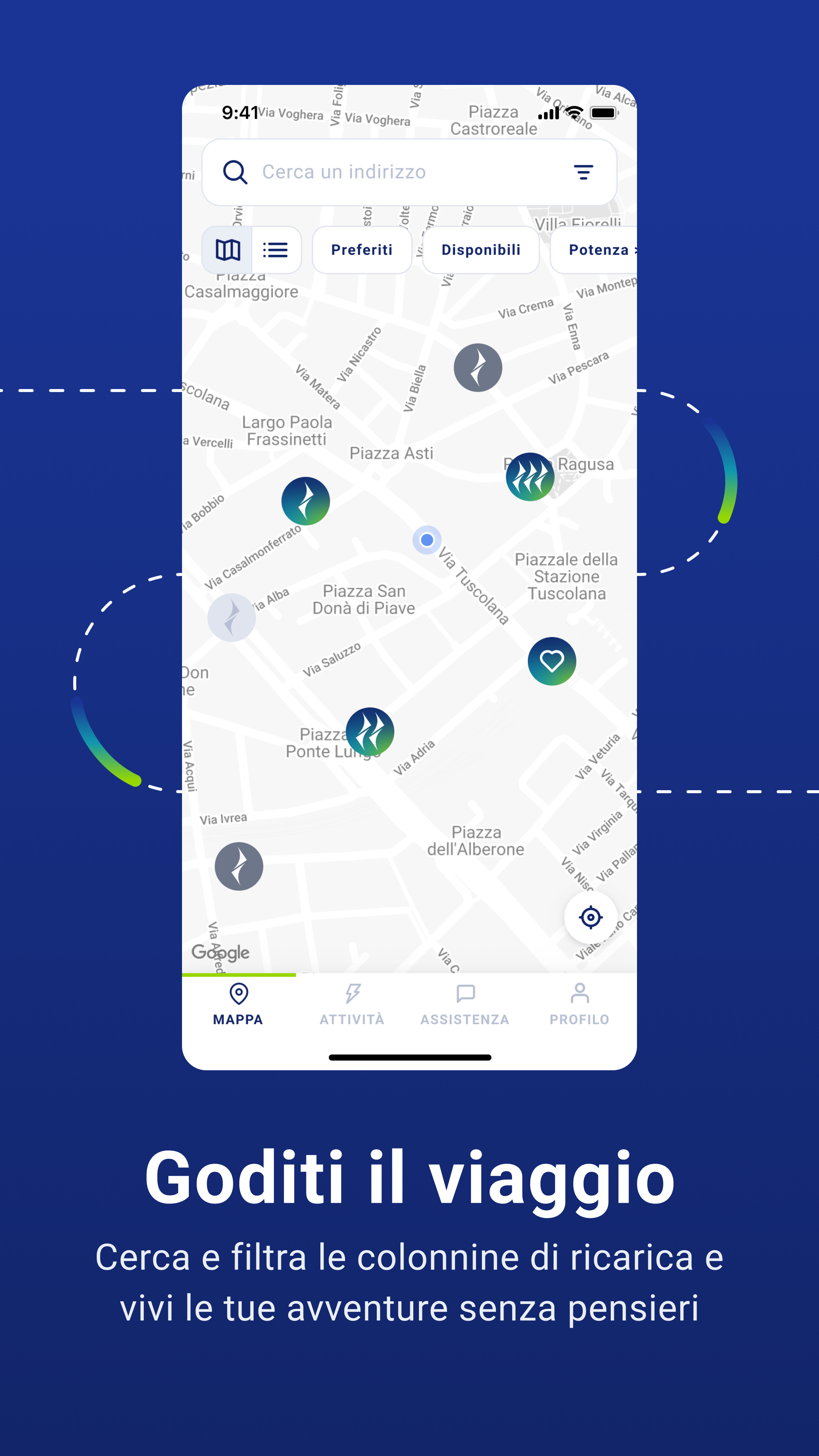 Download MyNextMove: the official Sorgenia app dedicated to the world of electric cars and mobility sustainable, which allows you to find the most suitable electric column for you for free and easily manage it charging your car. Charging your electric car has never been easier! With the MyNextMove App you have it at your fingertips a series of services that can help you with charging your car, such as: • View on the map more than 46 thousand charging points present throughout the national territory and find the electric column closest to you and suited to your needs • Have updated information in real time on the availability of each electric column along your route, to quickly recharge your electric car • Get directions to a charging station, via Google Maps or the navigator of your device • Book charging stations for a limited period of time (this function and the duration of the booking varies depending on the charging point manager) • Filter all electric charging stations based on availability, type of electrical outlets available, power, sustainability and other features • Save your favorite charging stations to find them faster • Start, monitor and end car charging at any time directly from the App • Pay simply and immediately, with your credit card, PayPal, Google Pay, via Wallet MyNextMove • Start and finish charging the electric car using the MyNextPass RFID card, to recharge in even faster, even without an internet connection • View the history of all top-ups made • Receive offers tailored to you to save on car charging; if you are a Sorgenia customer, i benefits for you increase! • Request assistance for your electric charging and be supported by our Customer Service always at your disposal flank. Download the app and find free electric car charging stations available near you, thanks to complete and real-time updated map of all charging stations in Italy. The electric charging stations for recharging the car available on the MyNextMove map adopt i following types of electrical socket: - CCS 1 - CCS COMBO2 (e.g. BMW and Volkswagen) - ChAdeMO (e.g. Nissan, Mistubishi, Peugeot, Citroen) - Schuko - Type 1 (e.g. Chevrolet and Ford) - Type 2 (e.g. Opel, Suzuki, Tesla and Volvo) - Type 2S - Type 3A (e.g. for scooters and motorcycles) Furthermore, if you are already a Sorgenia customer for at least one of the electricity, gas or fiber services you can access MyNextMove using the same credentials you use to access the MySorgenia app and enjoy the benefits exclusive to you dedicated. Recharge your electric car with the MyNextMove App: thanks to Sorgenia you can easily search for charging stations and electric columns closest to you!
