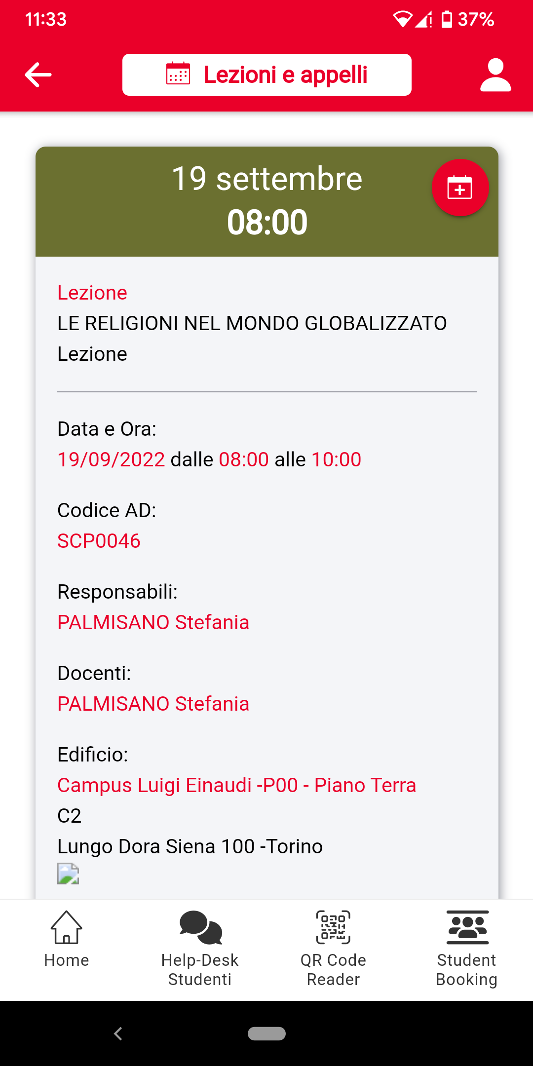 • Consulting lesson times (only for the Courses adopting the system that manages times and classrooms via University Planner UP).