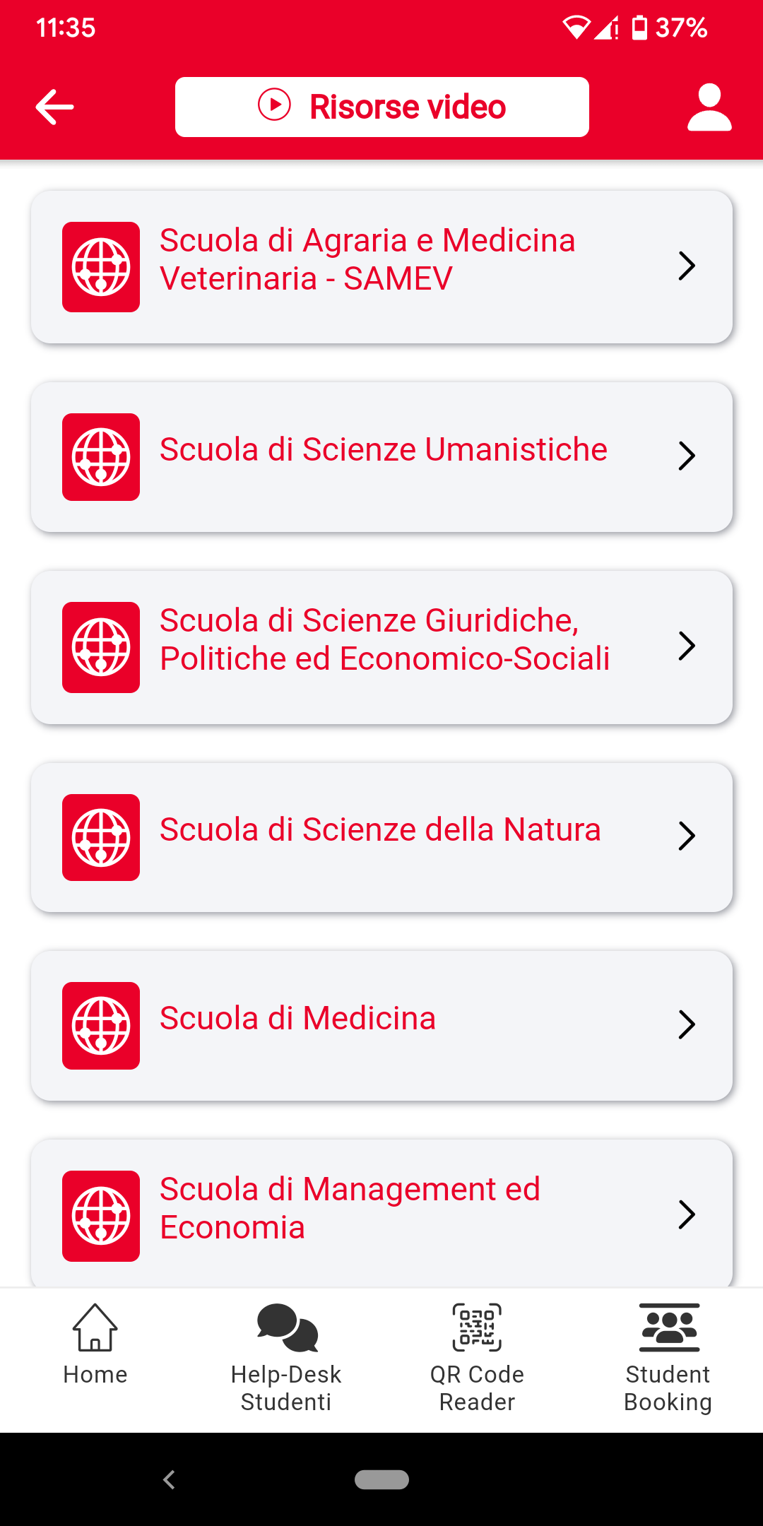 • Utility: services and information useful for all users: facilities, UniTO wifi, photo and video galleries.
