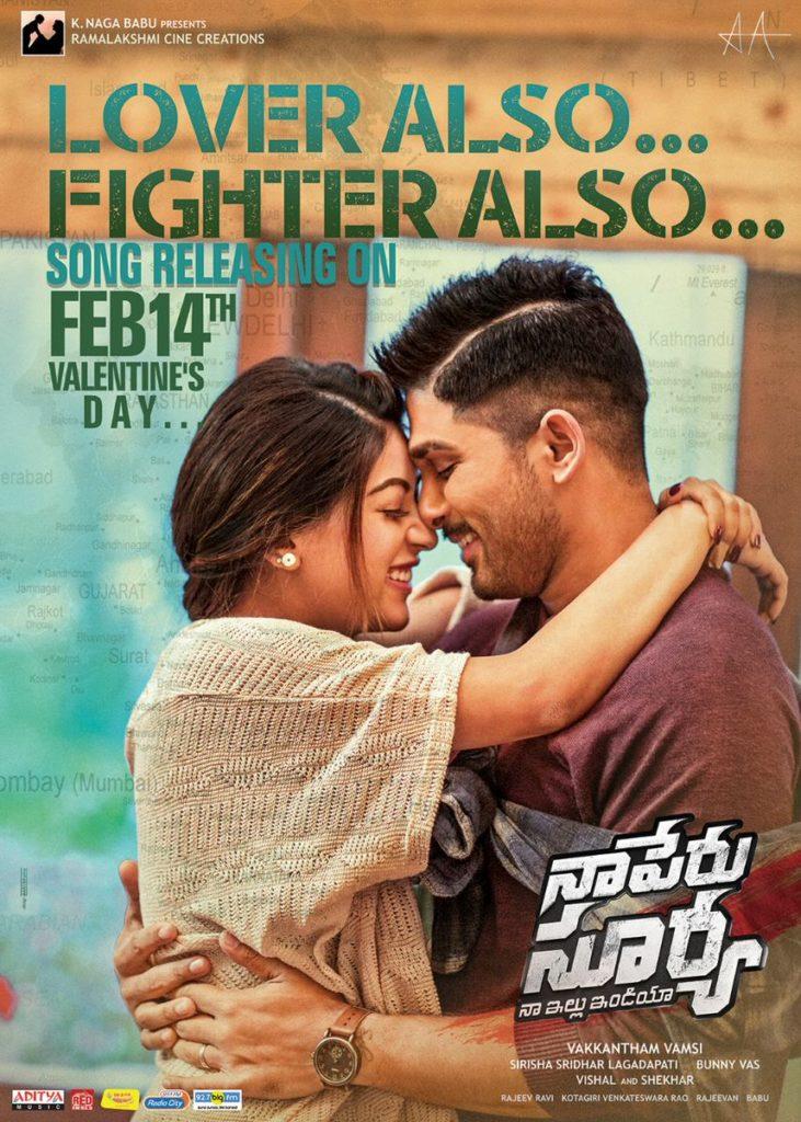 The story is about an army officer with anger management issues, played by Allu Arjun. Cast: Allu Arjun as Surya Anu Emmanuel Arjun Sarja R. Sarathkumar Vennela Kishore Boman Irani Elli Avram (performing in an item number) The movie marks the debut of Vamsi as a director. Vamsi has previously written stories for successful movies like Kick, Race Gurram and Temper. The movie stars Allu Arjun and Anu Emmanuel in the lead role while Arjun Sarja and R. Sarathkumar play supporting roles. Kotagiri Venkateswara Rao, Rajeev Ravi and Rajeevan are the editor, cinematographer and art director respectively. The movie teaser was released on 1 January 2018 and registered 10 million digital views within 29 hours. Soundtrack The soundtrack for the movie is composed by Vishal-Shekhar. The first single from the film, Sainika, was released on Indian Republic Day, 26 January 2018 as a tribute to the soldiers of the Indian Army.[6] The film's second single, Lover also, fighter also, was released on 14 February 2018.[7]