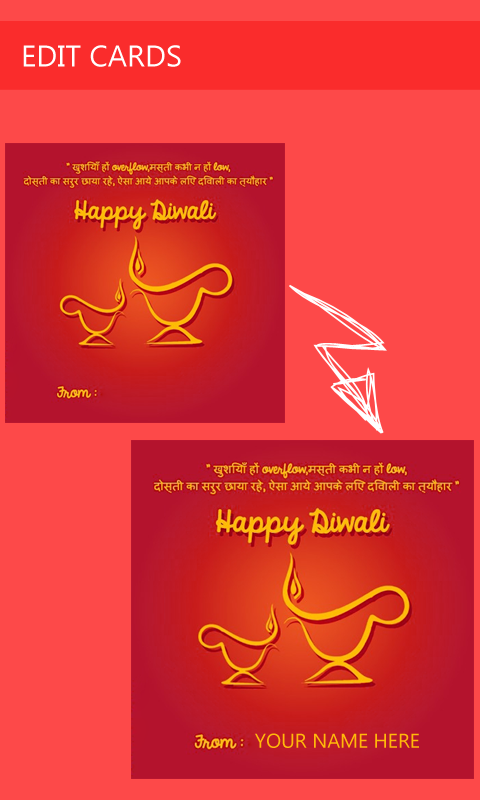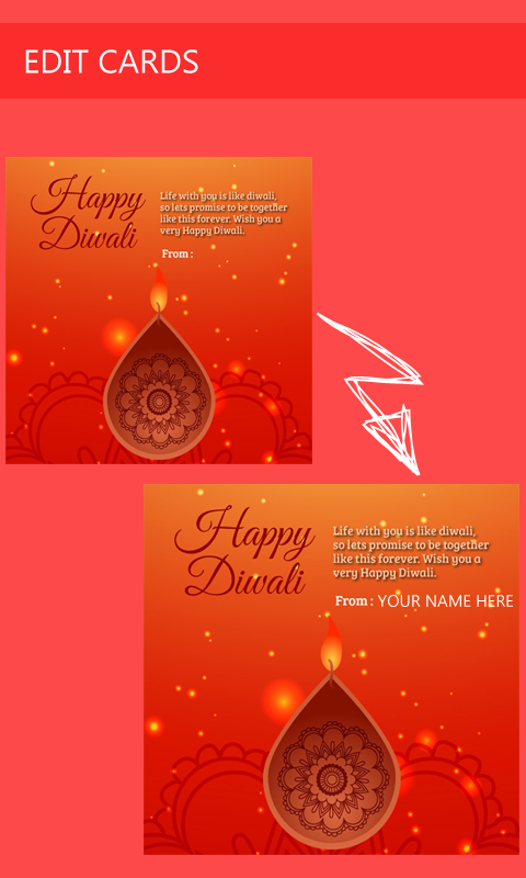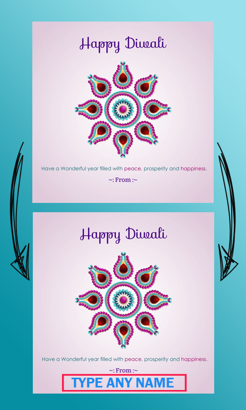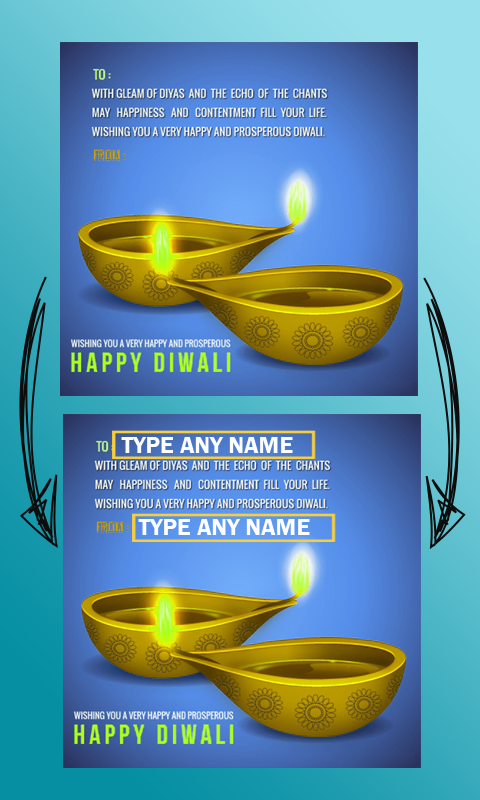 Diwali Cards (Package Name: com.amigostudio.diwalicards) is developed by Amigo Studio and the latest version of Name on Diwali Greetings Cards 1.0 was updated on August 31, 2018. Name on Diwali Greetings Cards is in the category of Photography. You can check all apps from the developer of Name on Diwali Greetings Cards and find 1 alternative app to Name on Diwali Greetings Cards on Android. Currently this app is for free. This app can be downloaded on Android 4.0.3+ on APKFab or Google Play. All APK/XAPK files on APKFab.com are original and 100% safe with fast download.