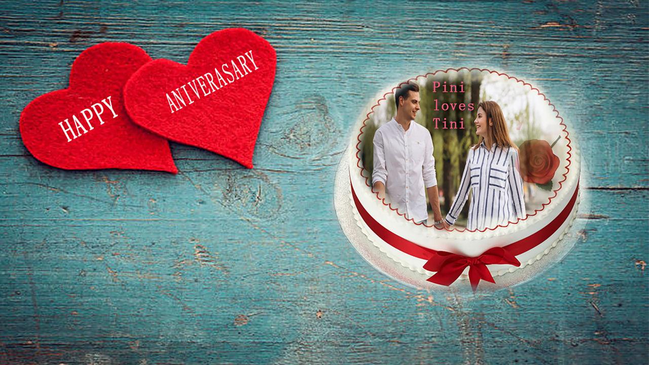Name photo on anniversary cake